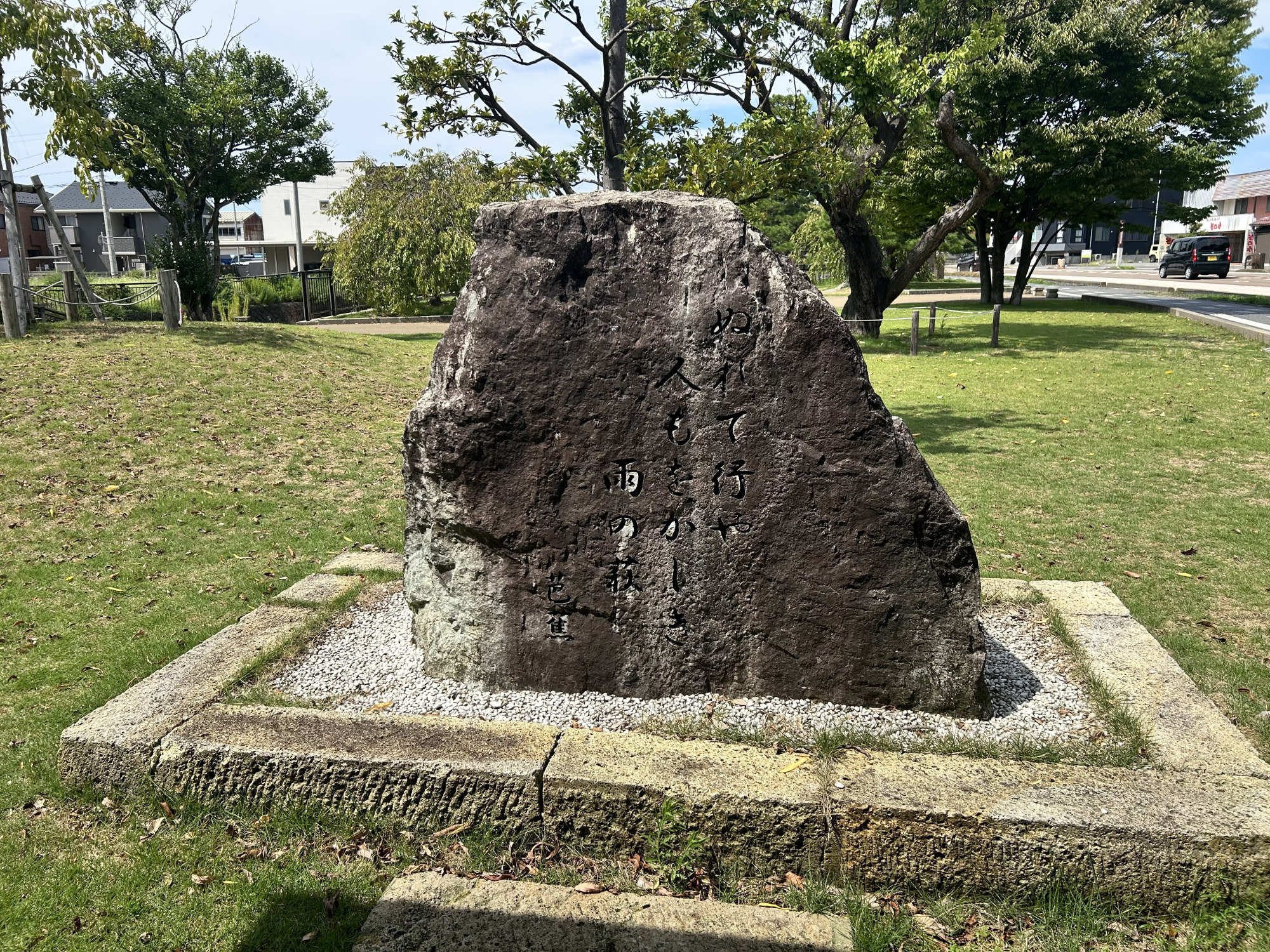 小松大橋を渡る際は、ぜひ足を止めてこの句碑に目を向けてみてください。雨の日であれば、なお一層その趣を感じられることでしょう。
