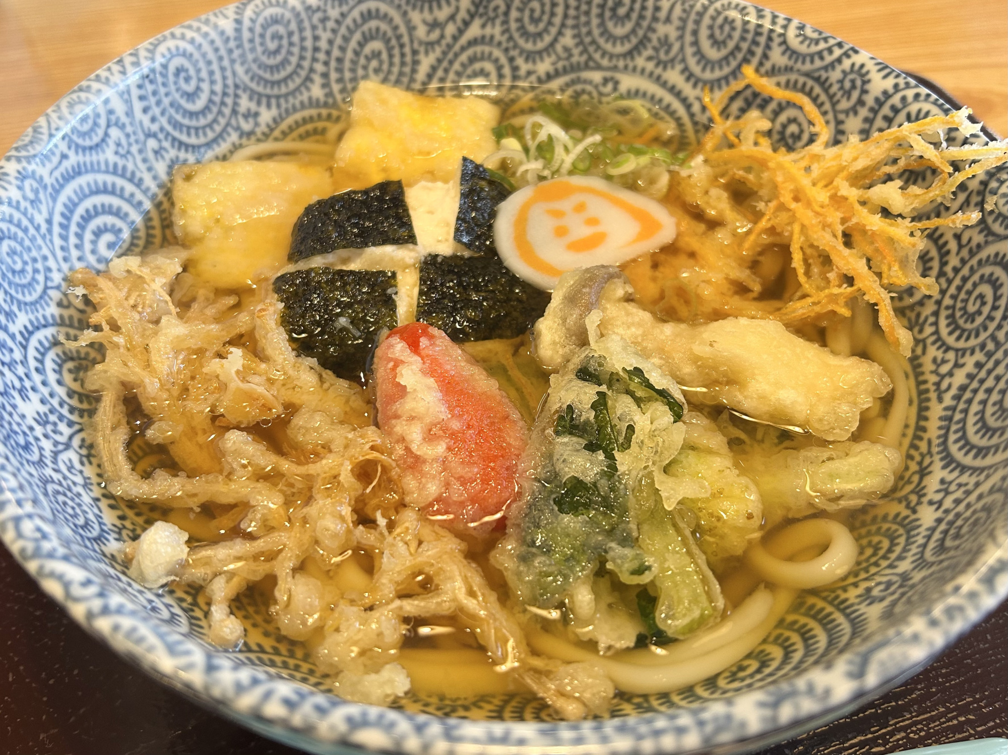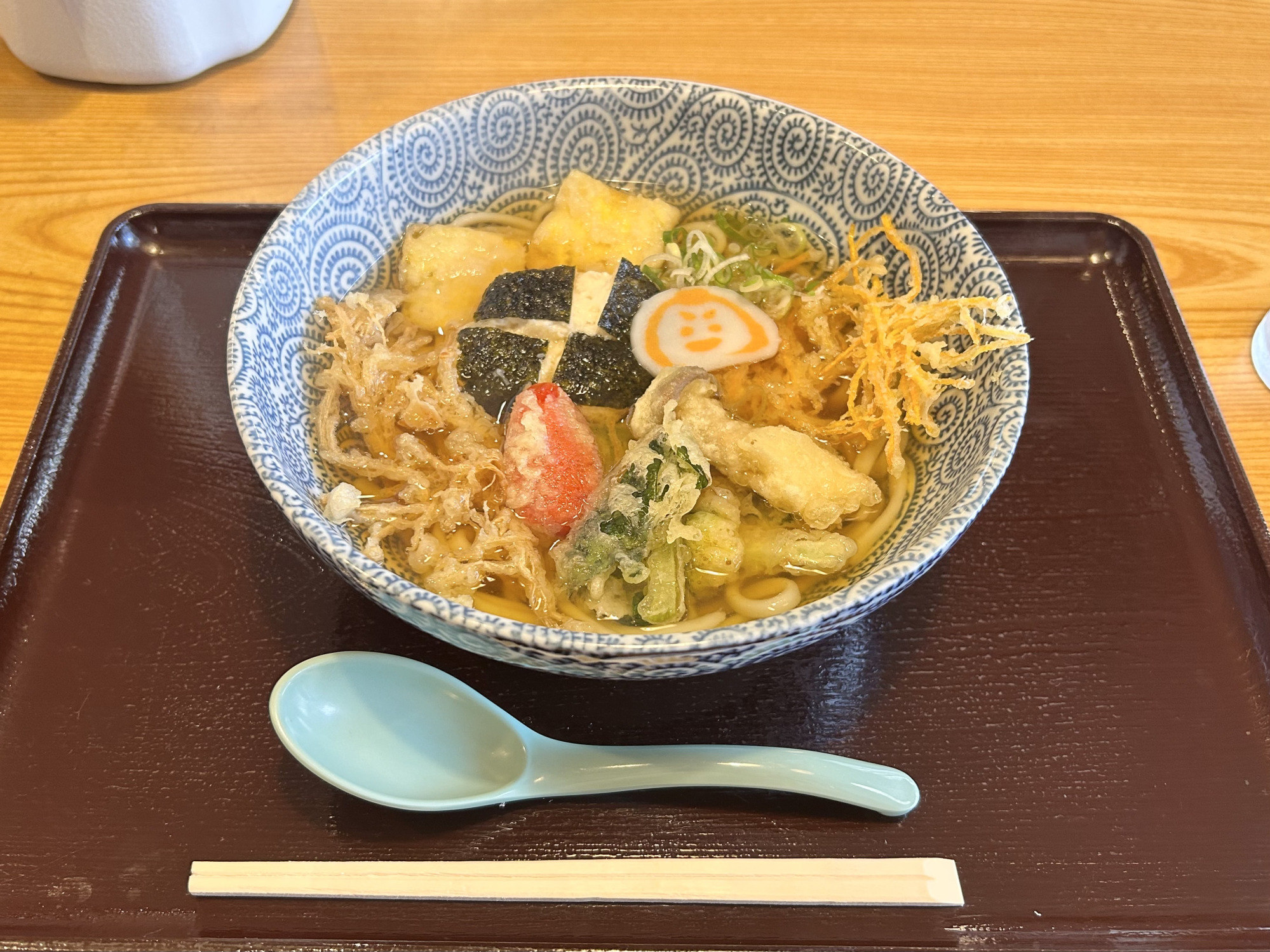 麺は、生麺・茹で麺・乾麺の3種類から選ぶことができ、この店舗では生麺を使用しています。一般的な太くてコシの強いうどんとは異なり、細めでやわらかな食感が特徴。関西風のやや濃いめの出汁とよく合い、最後まで心地よく味わえる一杯です。
