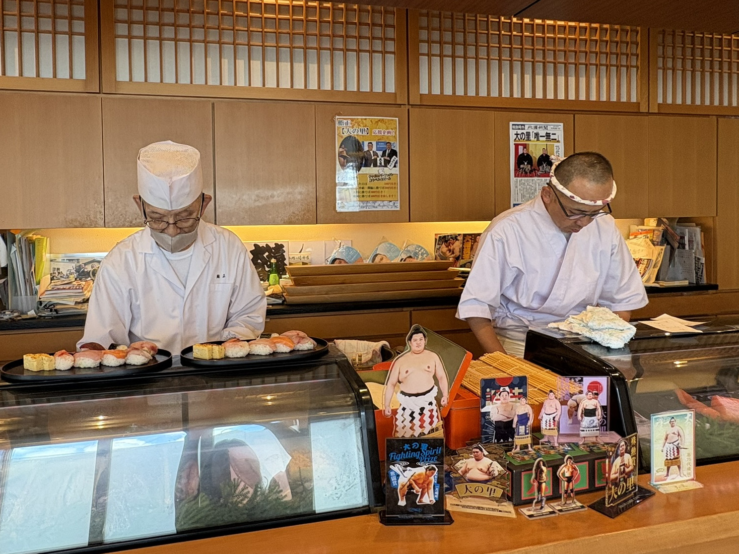 大の里関はどれくらいの量を食べるのでしょうか。店主に尋ねたところ、ワサビ抜きの寿司を2人前ほどペロリと平らげるのがお決まりと教えてくれました。辛味が苦手なんて、意外ですね!