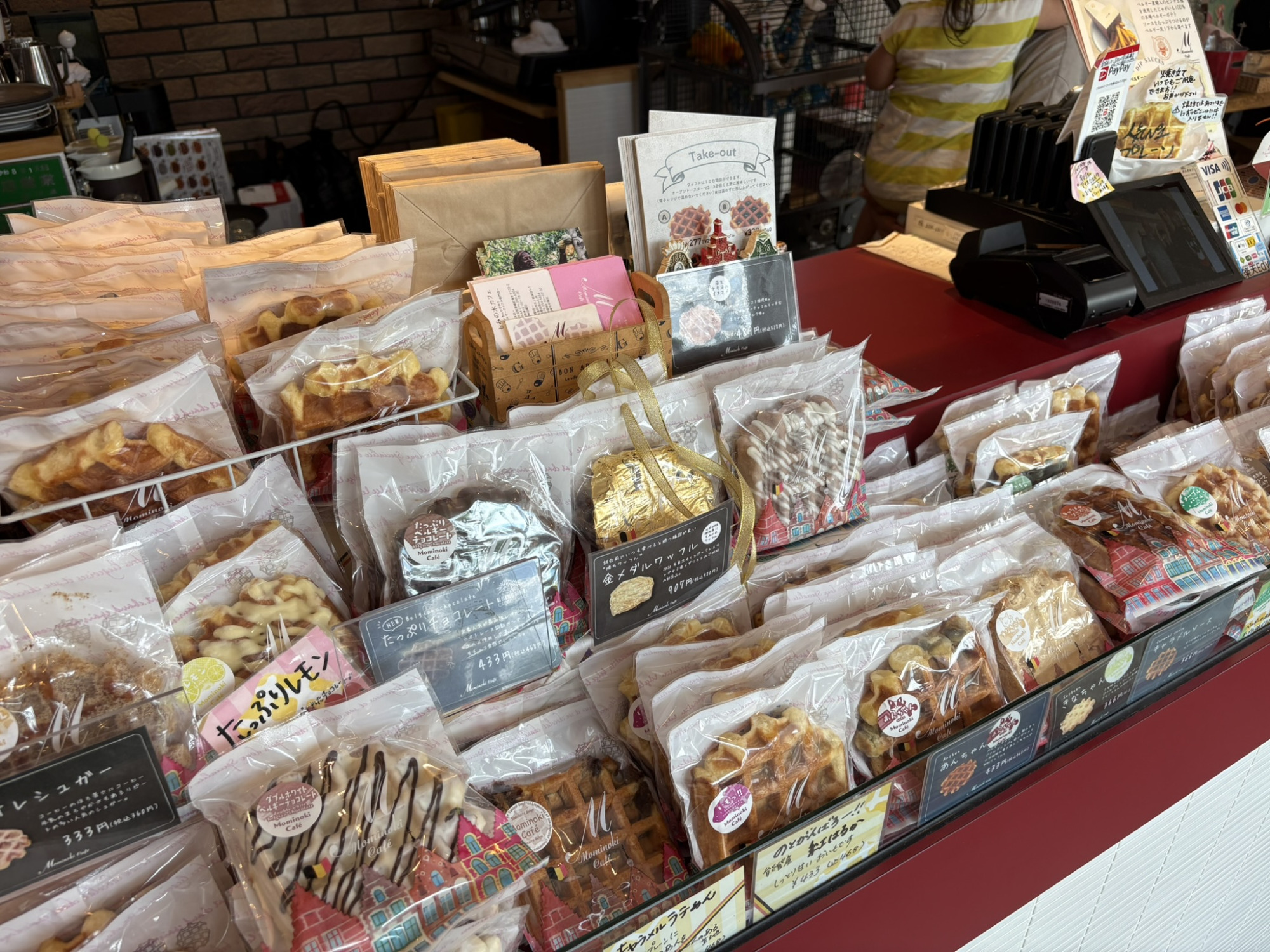 店内を彩る豊富な種類のベルギーワッフルに、ついつい目移りしてしまいます。ベルギー人の店主が、母国の製法や材料にこだわって日々手作りし、本場の味を再現しているんです。