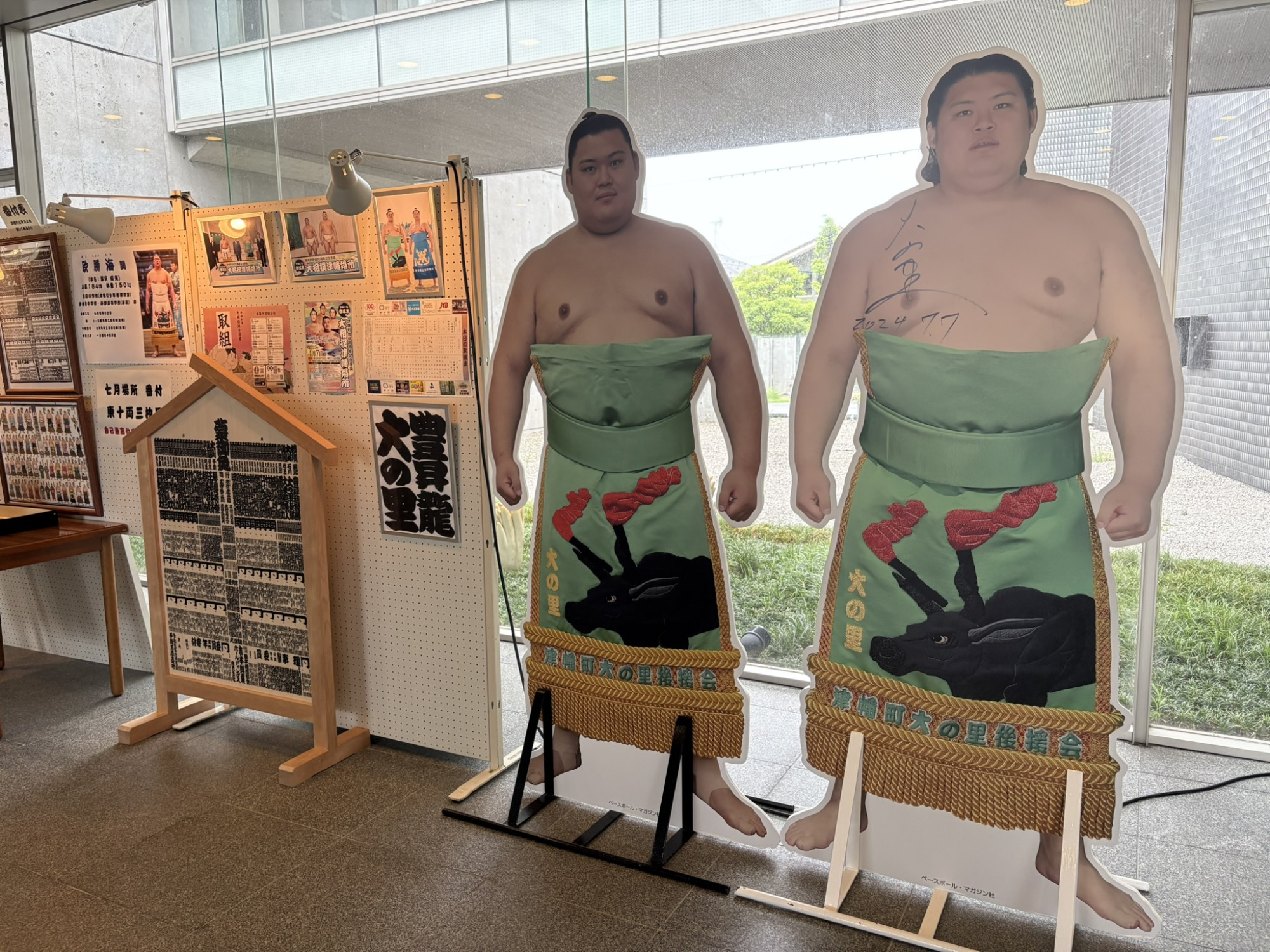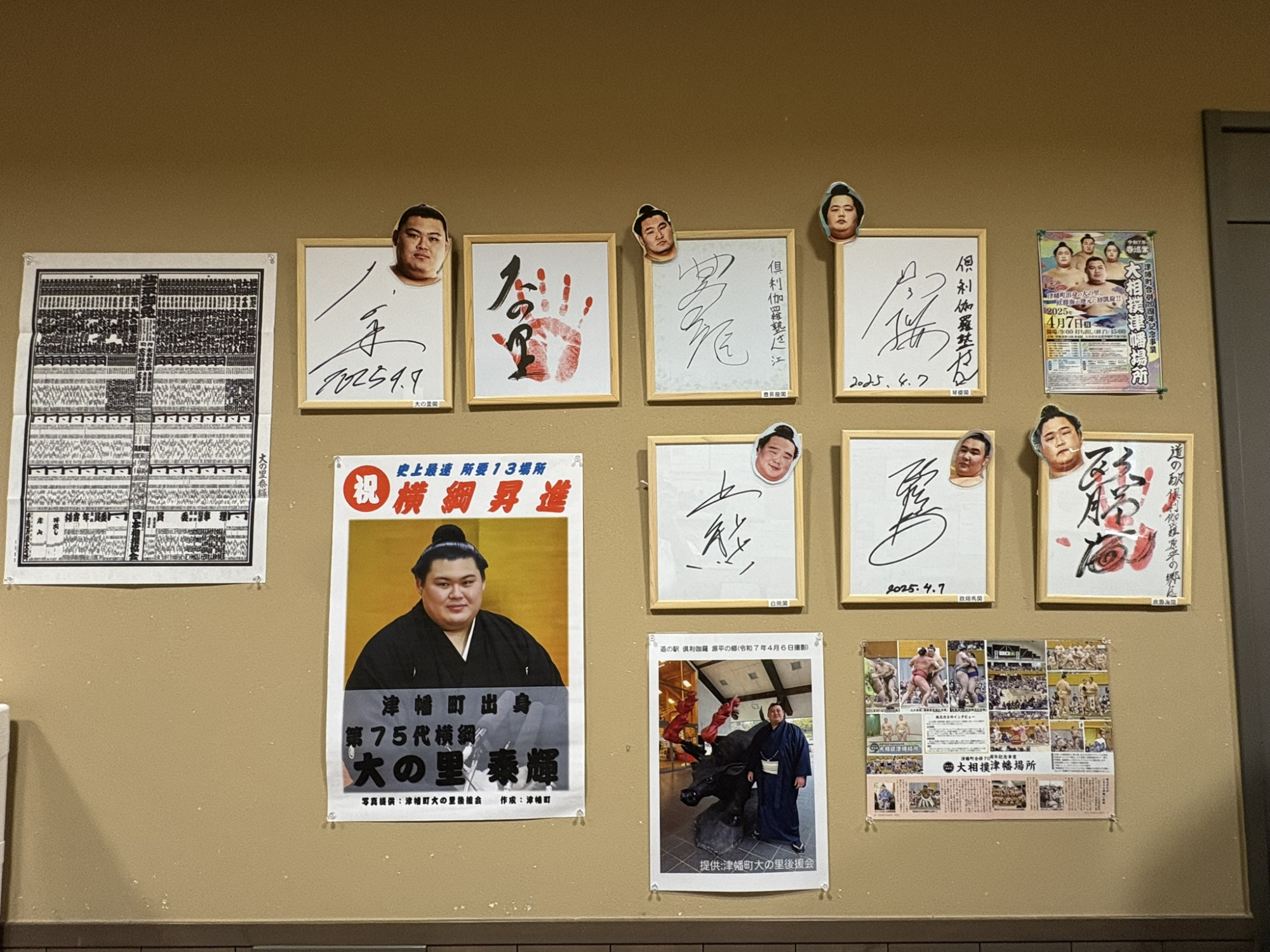 今年4月には、春巡業の大相撲津幡場所で再び訪れ、宿泊もしました。館内には、その際に残した大の里関や力士仲間たちのサインと手形が飾られており、来館者の目を引きます。郷土力士の存在が身近に感じられ、ファンにとって特別な場になっていること、間違いなしです!