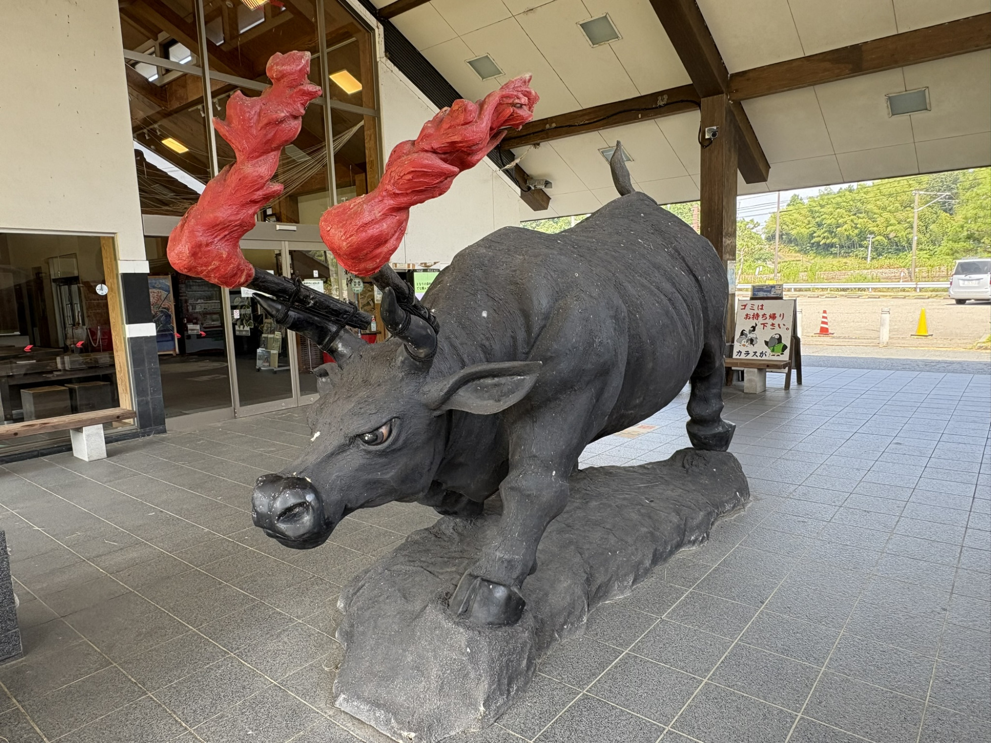 大の里関がツーショット写真を撮った火牛(かぎゅう)のモニュメントは、道の駅の敷地内にある「歴史資料館 倶利伽羅源平の郷」に展示されています。