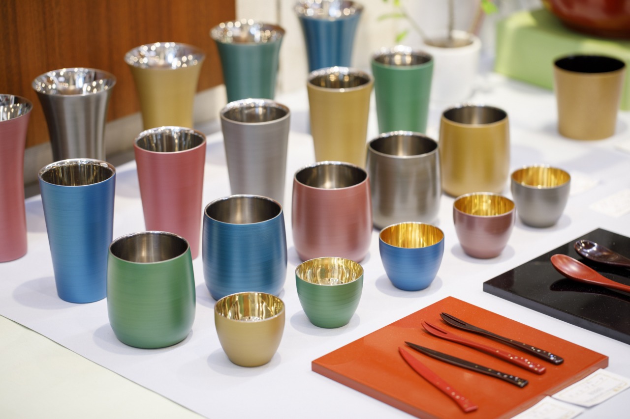 ▲漆器の技法を用いたカラフルなカップ