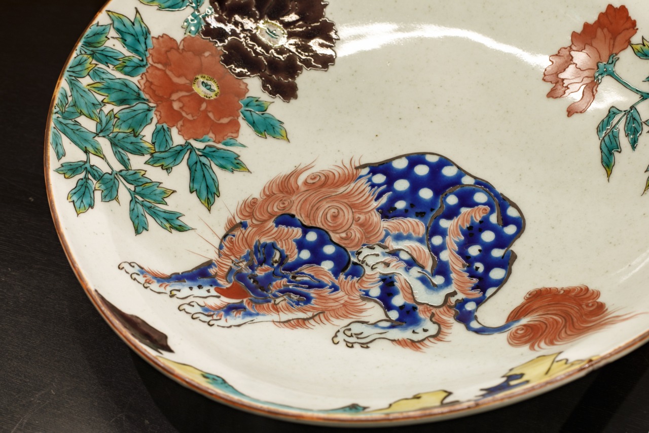 1661年、江戸時代に現在の加賀市大聖寺で陶石が発見され、前田家3代目藩主・利常が磁器の生産を命じたのが九谷焼のはじまり。五彩を使って描かれた大胆な構図とのびのびとした線描きが特徴で、当時の作品は「古九谷」と呼ばれています。