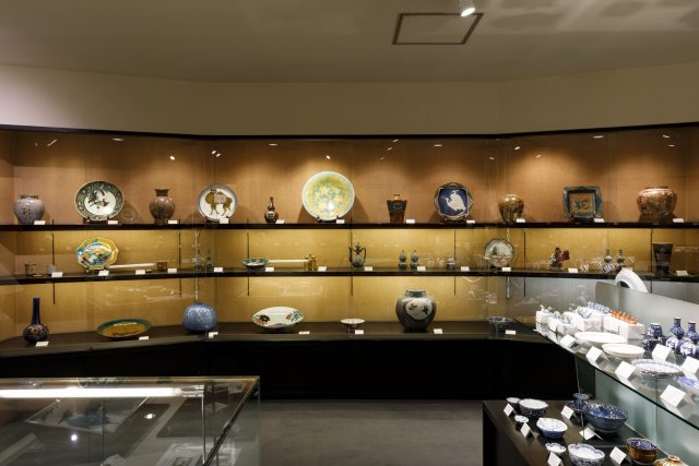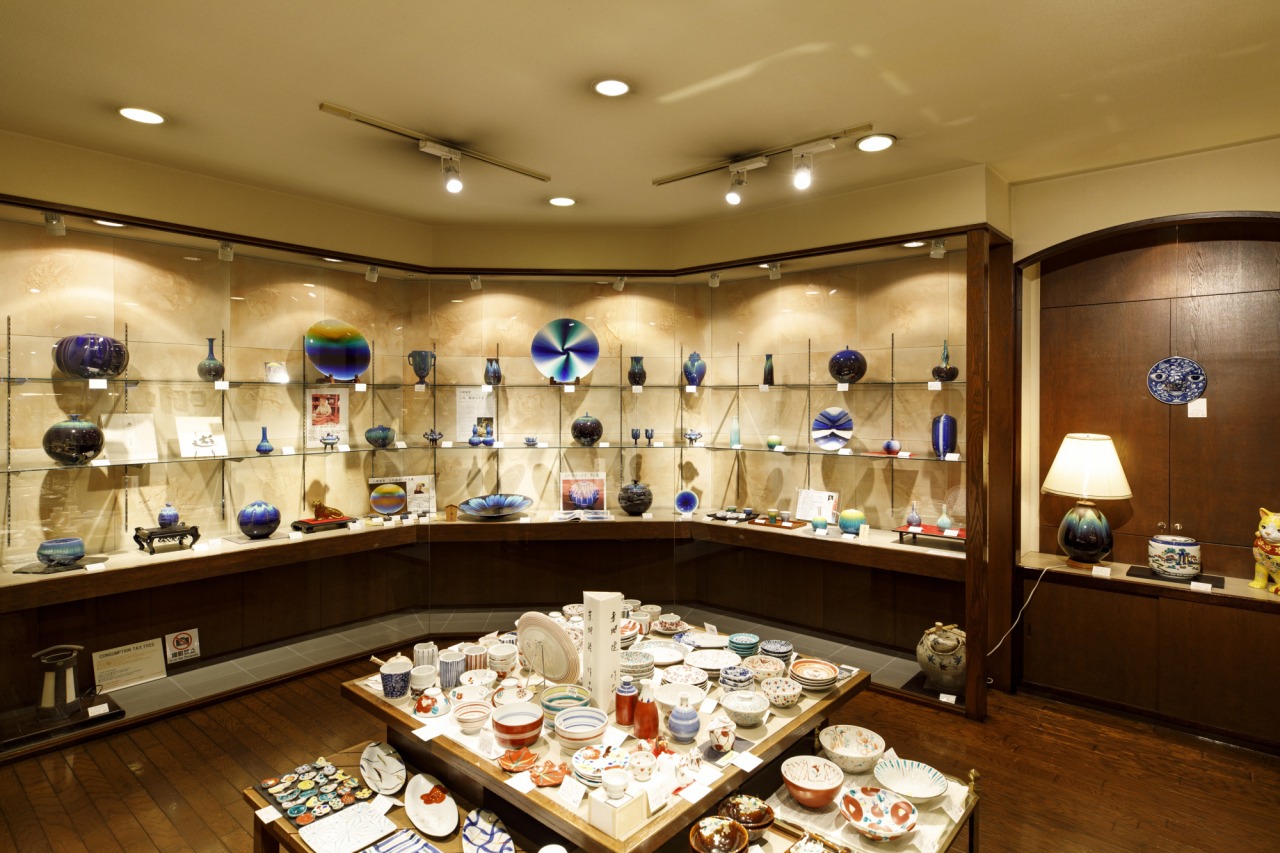 同店の2階には初代徳田八十吉や北出塔次郎といった名匠の他、 宮内庁御用達の山本長左の食器などが展示されています。また「ギャラリー片町」も併設しており、色々な作家の企画展を開催しています。