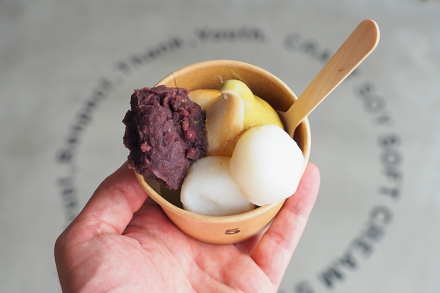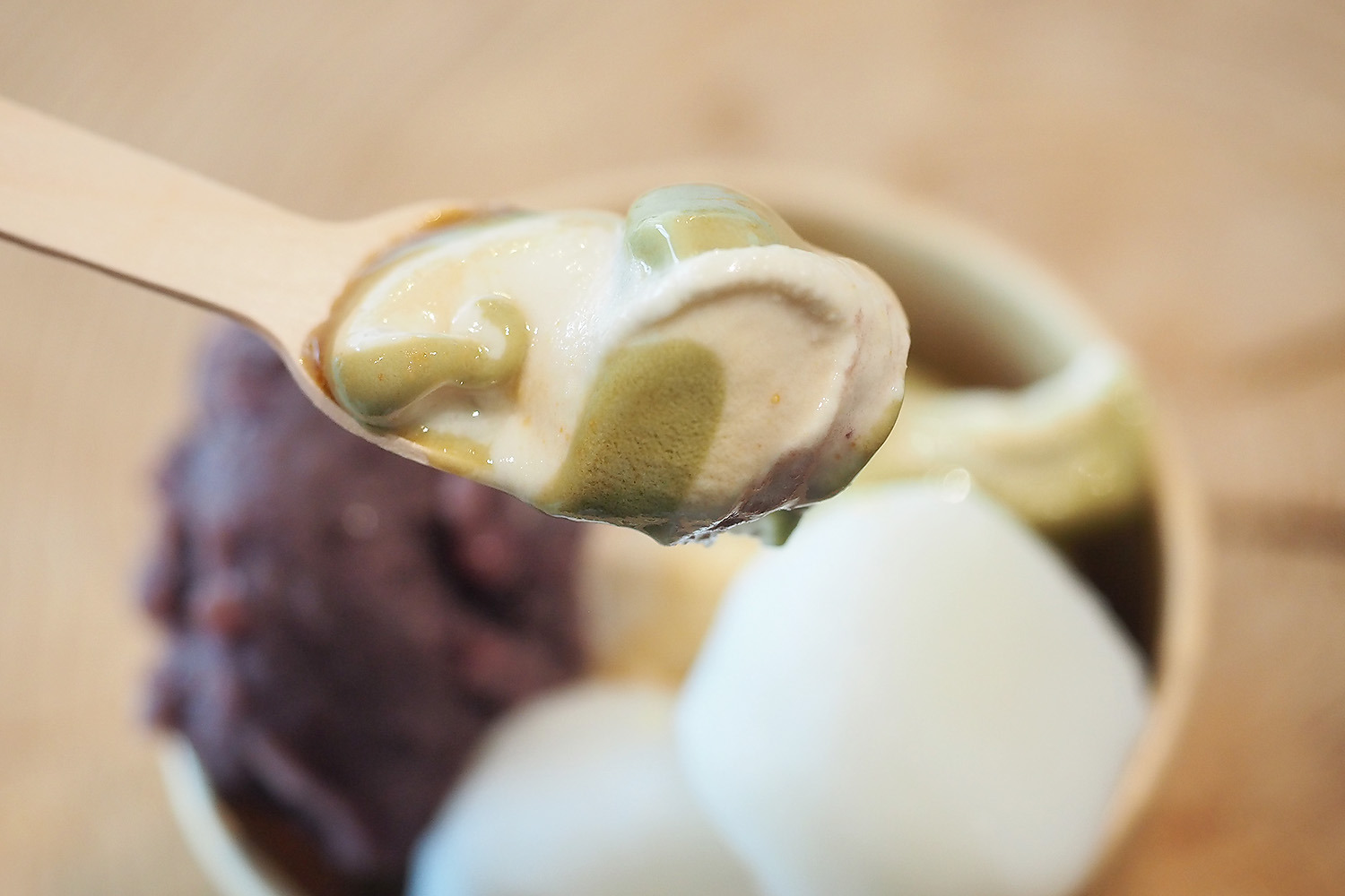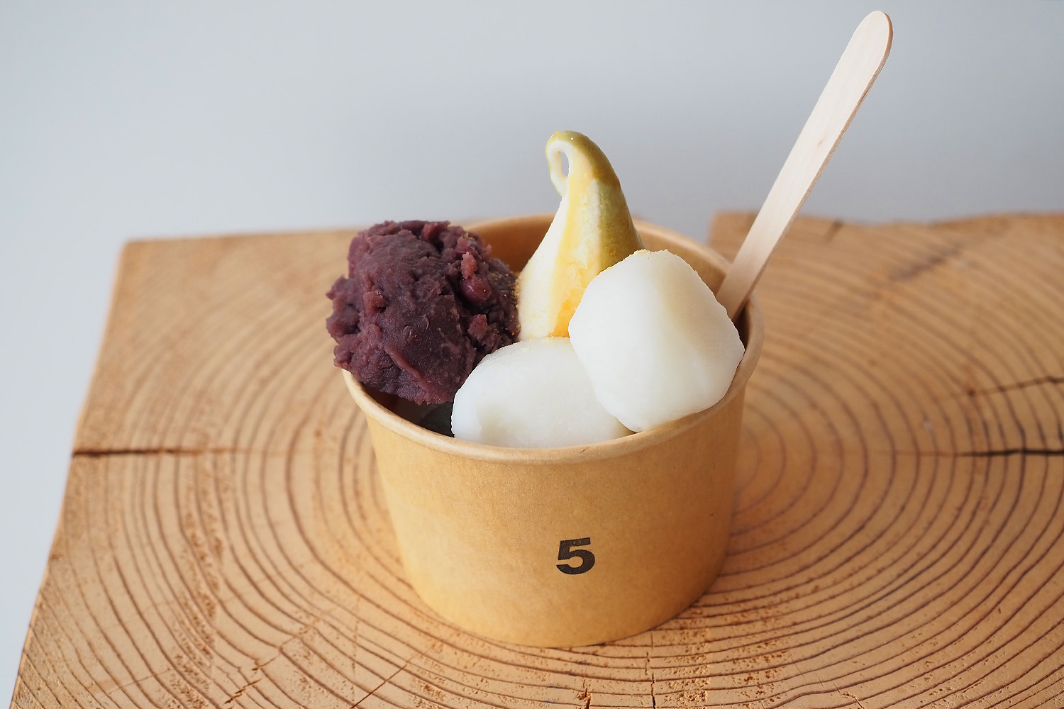 【写真のメニュー】5-スペシャル(お好きなソフト+あんこ・白玉・黒蜜・きなこ)
