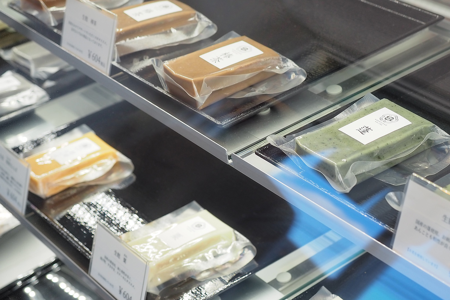 【写真のメニュー】味噌キャラメル、醤油チョコレート(前)、甘酒&ブルーベリー、パイン&マンゴー(後)