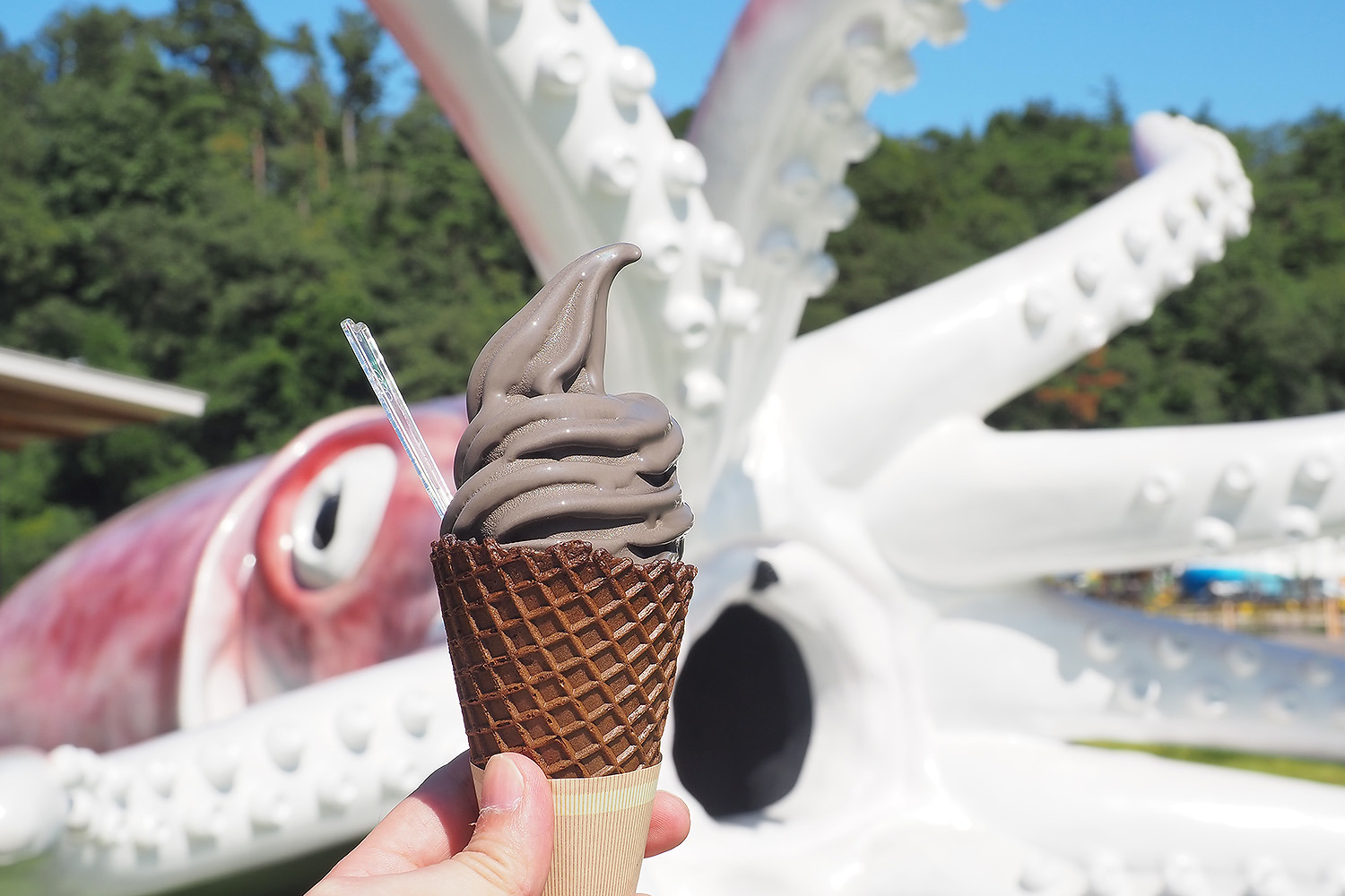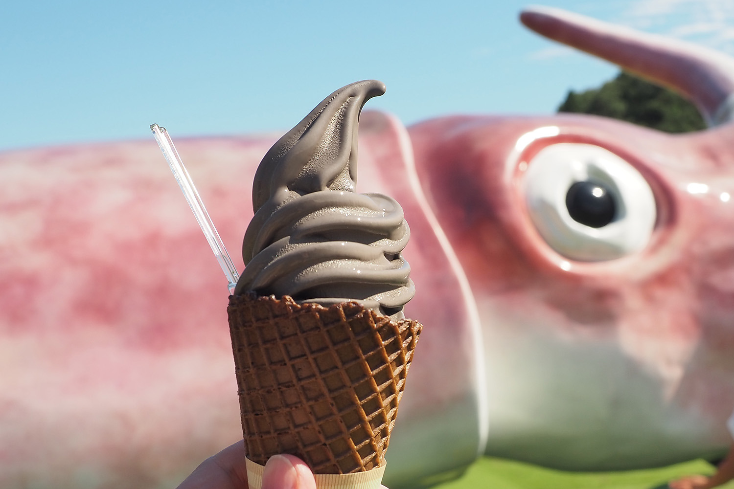 巨大イカもびっくり、黒いソフトクリーム?