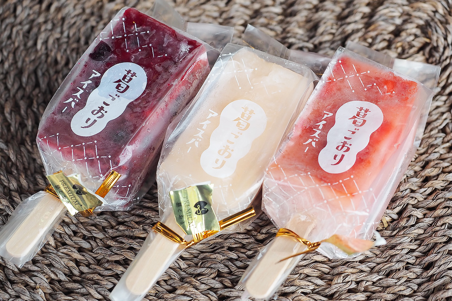 【写真のメニュー】プレミアム葛ごおりアイスバー(石川県産いちご、もも、ブルーベリー)