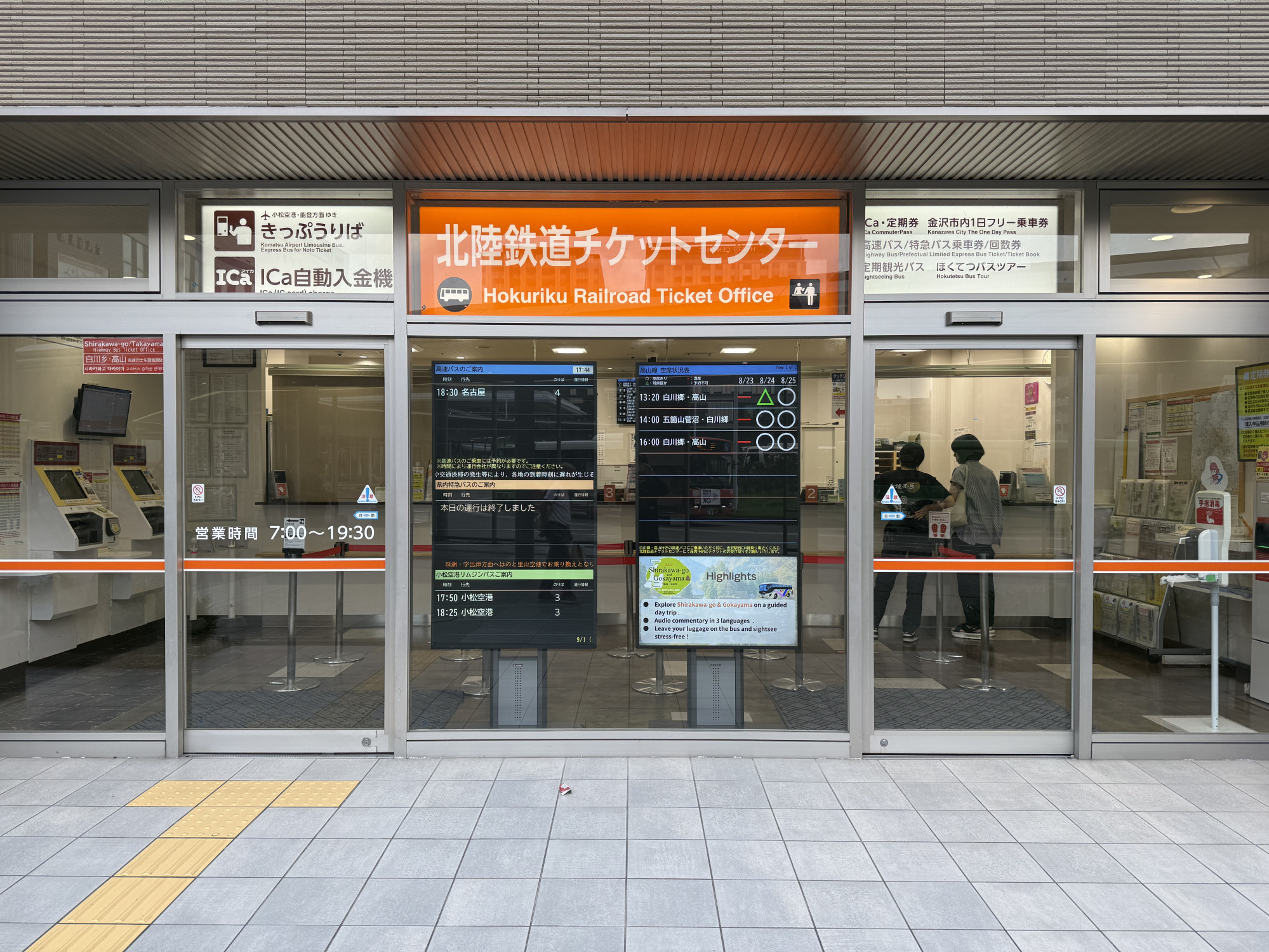 出発前に北陸鉄道チケットセンターでフリー乗車券を購入し、旅のスタートに備えましょう。