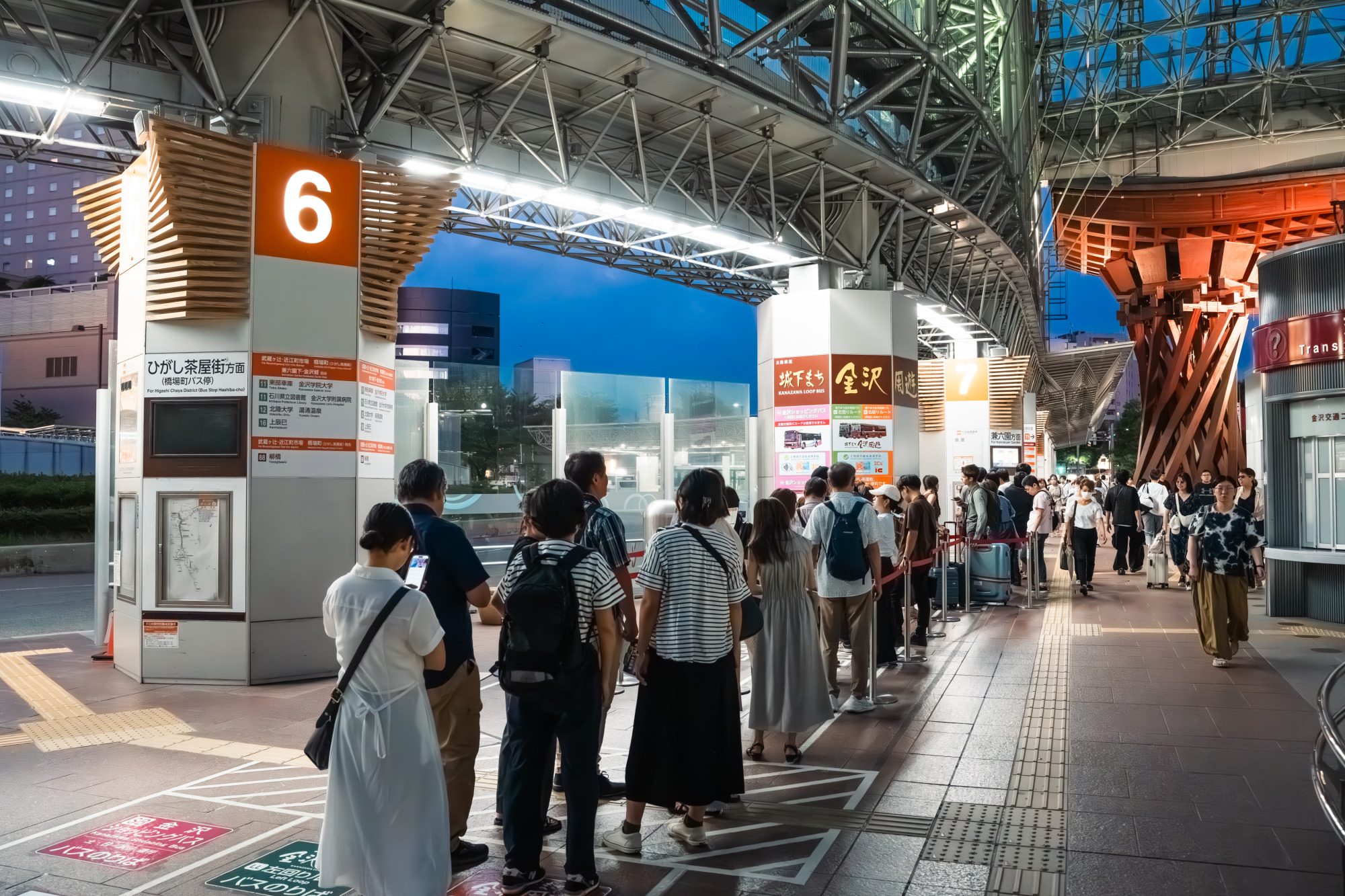 金沢ライトアップバスは金沢駅東口⑦番のりばから出発します。