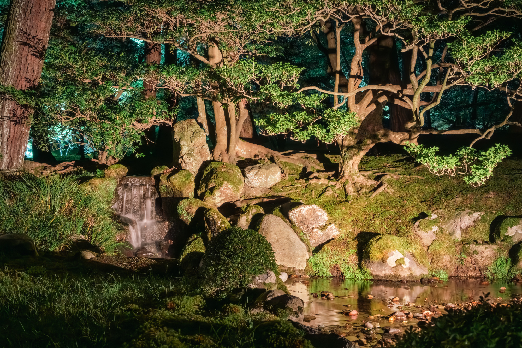 春(桜)、夏(新緑)、秋(紅葉)、冬(雪吊り)など、四季に応じた自然と歴史的建造物の共演が楽しめ、期間中はライトアップ演奏会などの関連イベントも開催。幻想的な夜の庭園を眺めながら、音楽を聴いて楽しむひとときも体験できます。