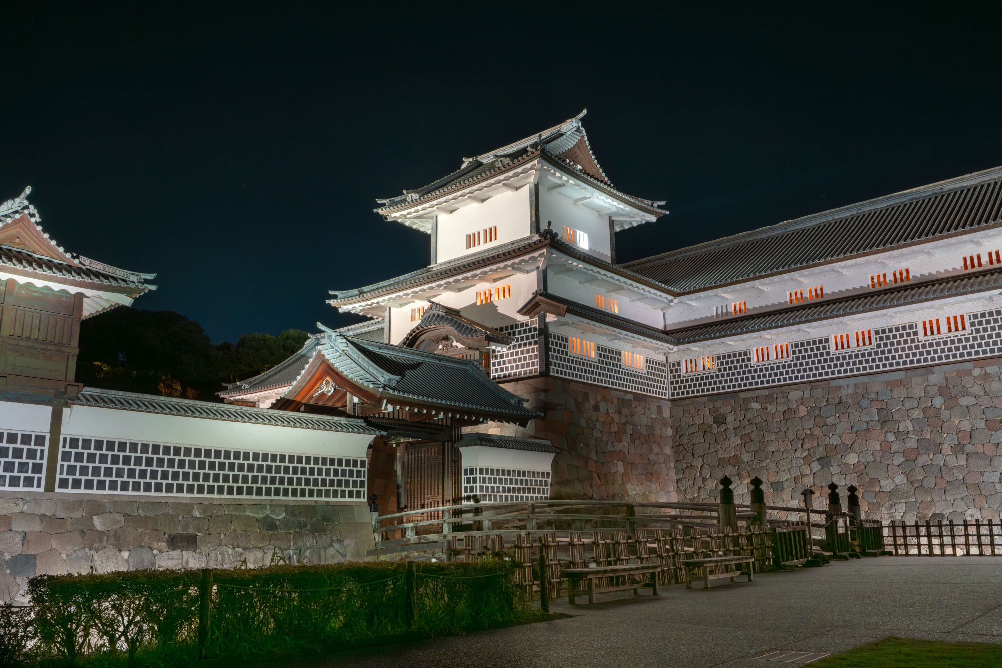 金沢のまちなかには、夜になると幻想的にライトアップされる歴史的な名所が点在しています。昼間とはまったく違う雰囲気に包まれた街並みや建物は、訪れる人の心を静かに癒してくれます。