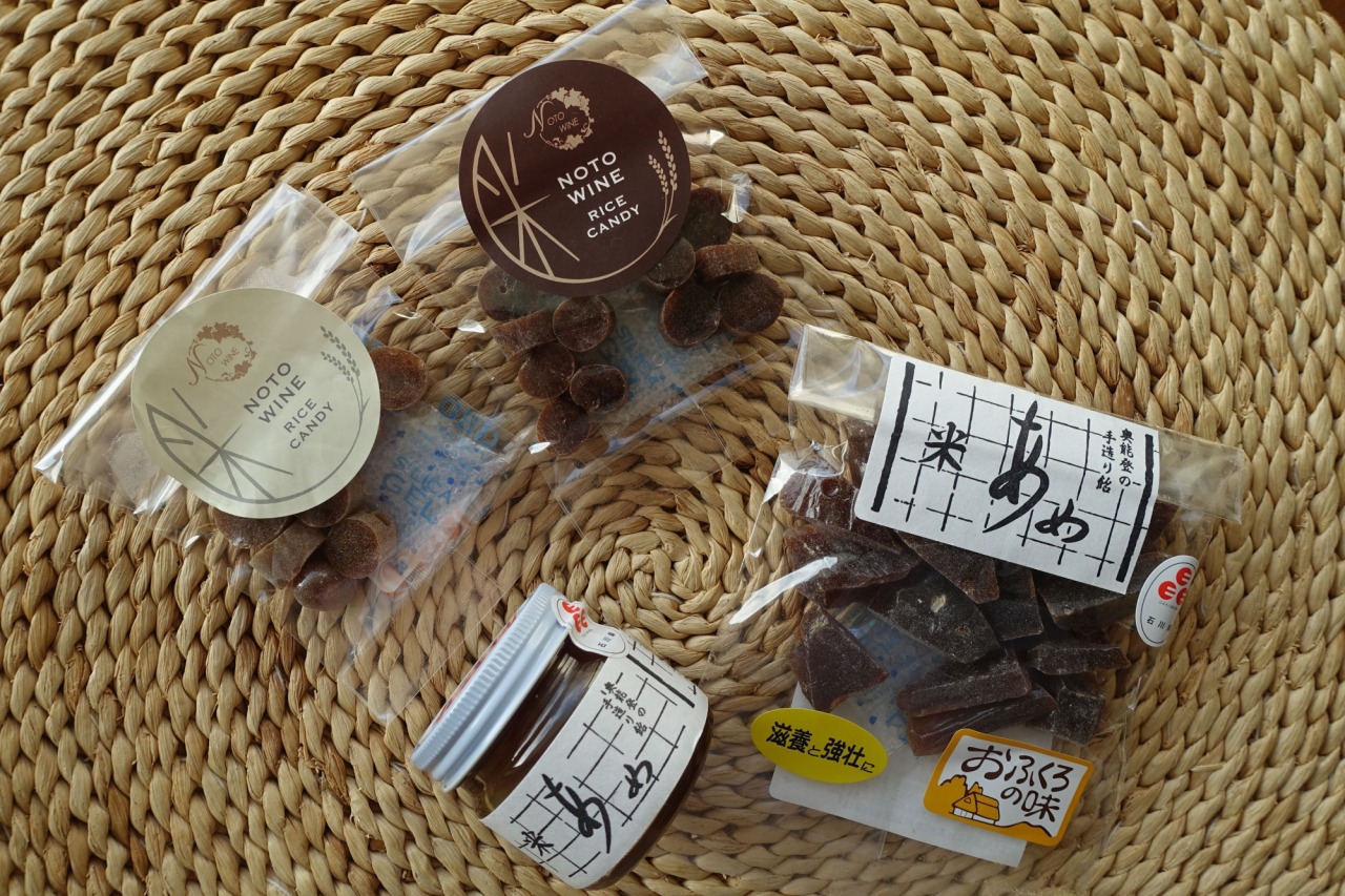 商品は定番のほか、「能登ワイン」とコラボしたキャンディ「能登ワイン米飴」などもあって、友達へのお土産にしたくなります。