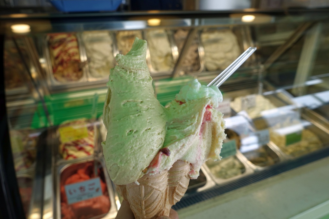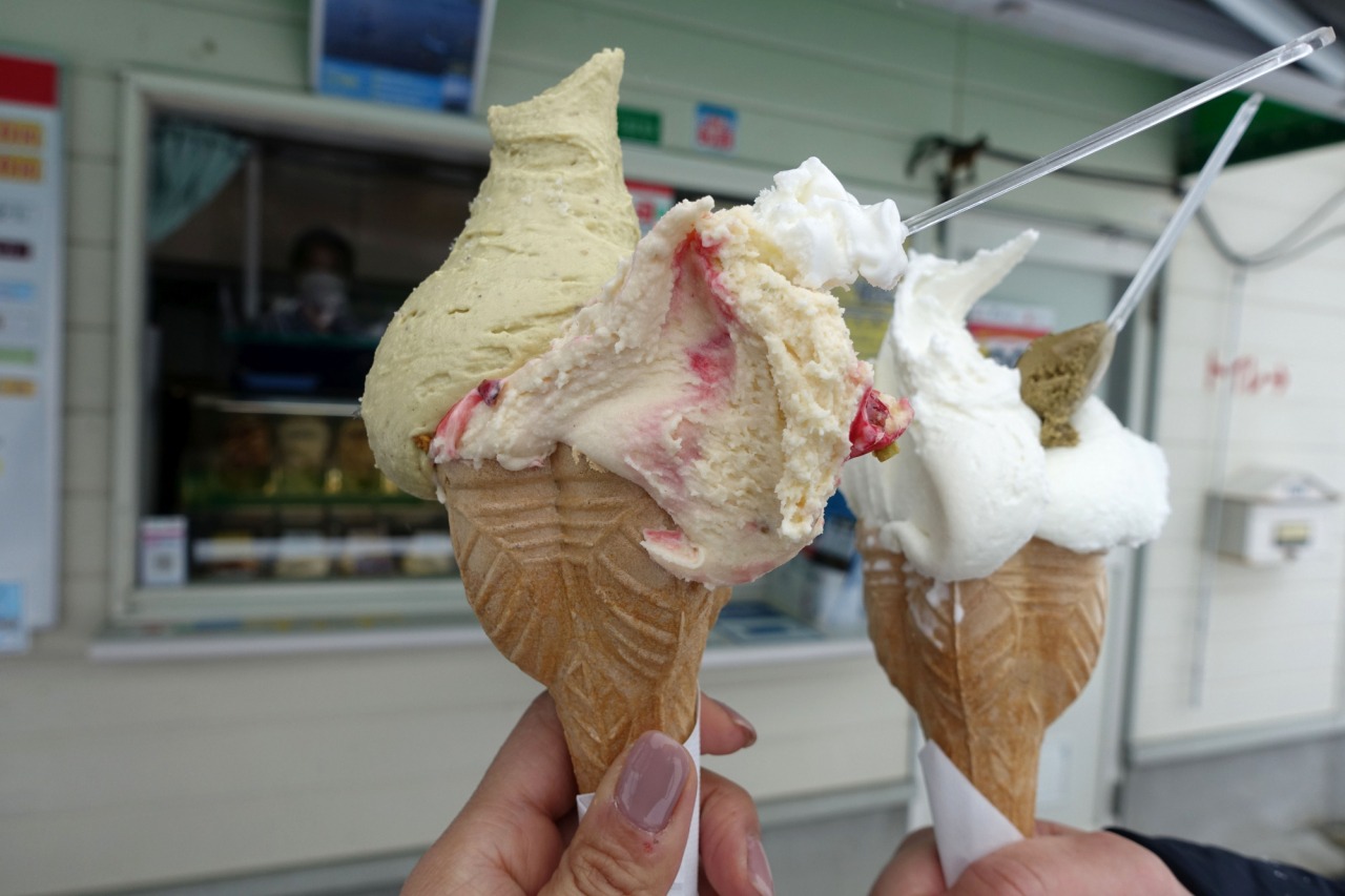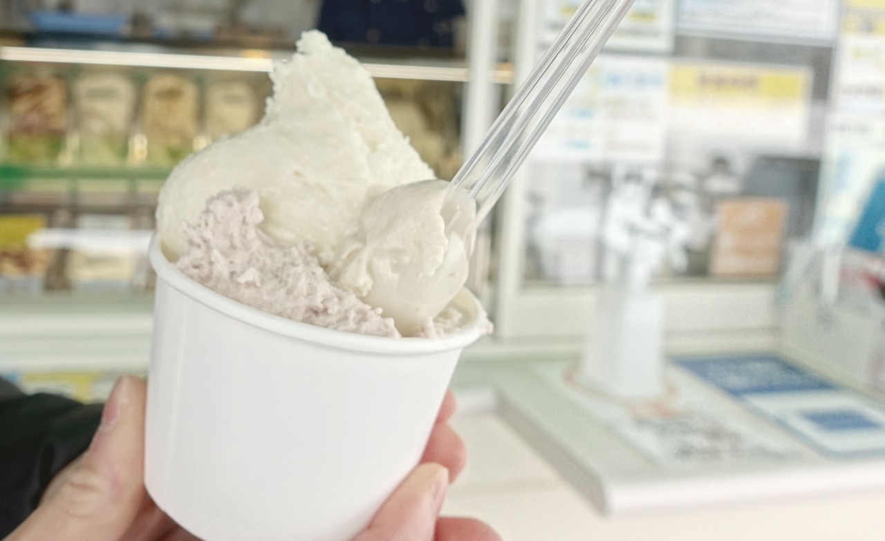 間違いなく、「どのフレーバーも魅力的で決められないよ~」となりますが、おまけで好きな一口サイズのジェラートを付けてもらえます。つまり、シングルでも2種類が味わえるということ。これも能登人のおおらかさ!