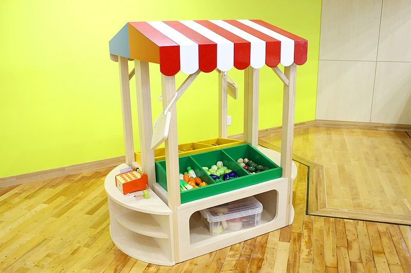 大型遊具で体を動かせる「どきどきゾーン」や知育玩具などで楽しく遊べる「わくわくゾーン」、 赤ちゃんが安心して遊べる「にこにこゾーン」の3つのゾーンからなる「すくすくひろば」のほか、親子でクッキングが楽しめる「クッキングスタジオ」も人気です。