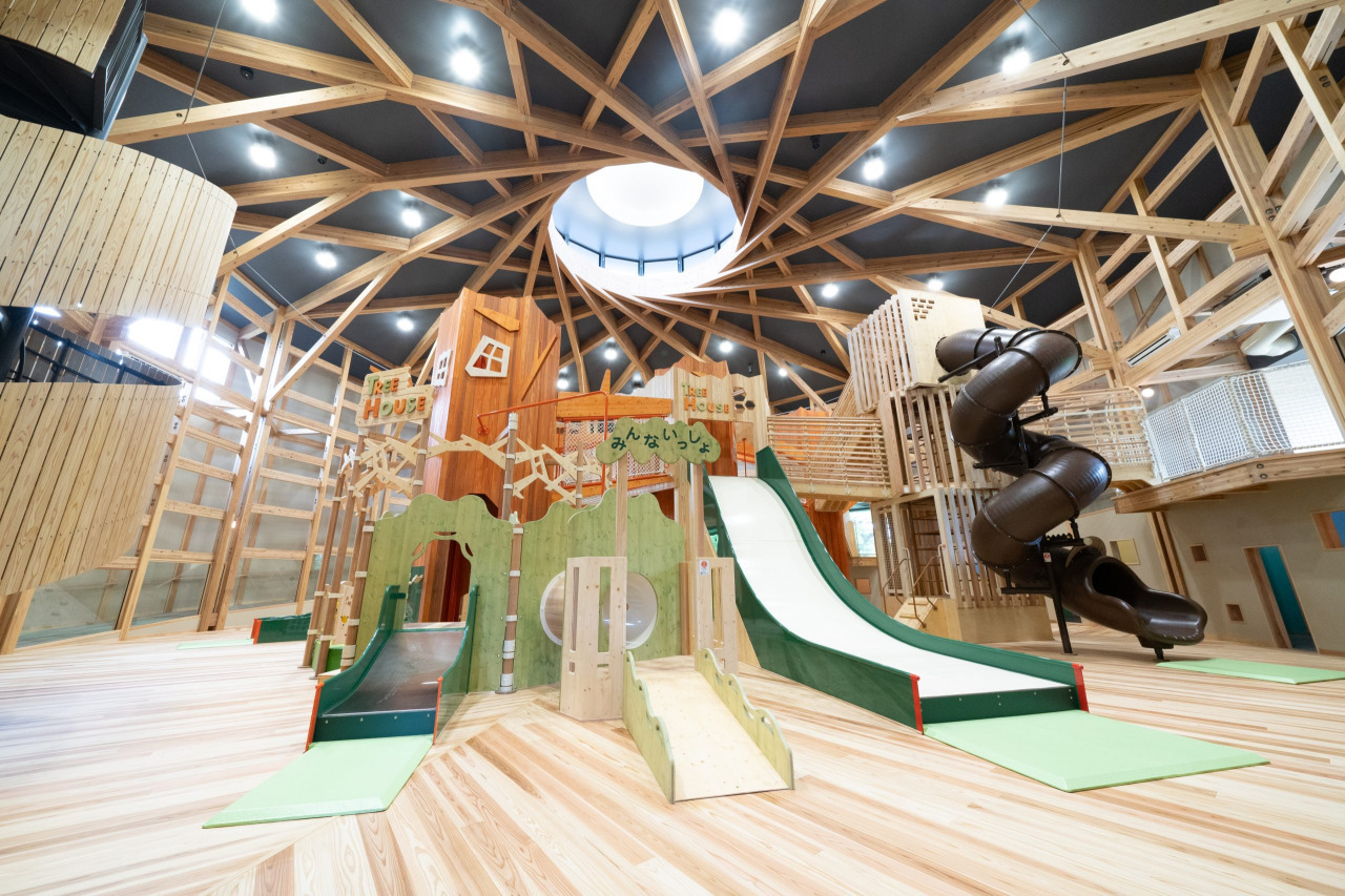 「もりのひみつきち」は、河北郡津幡町にある室内遊び場です。こちらも2024年7月にオープンした新しい施設で、木の温もりに触れられる点が魅力。