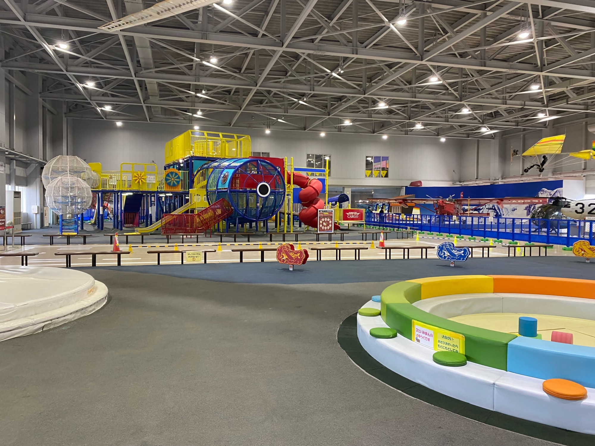 さらに、フライトシミュレーターでは操縦の疑似体験も楽しめ、子どもから大人まで夢中になること間違いなし。屋内遊具広場「ぶ〜んぶんワールド」には、飛行機型遊具「飛ぶぅーん」があり、大勢の子どもたちで賑わっています。