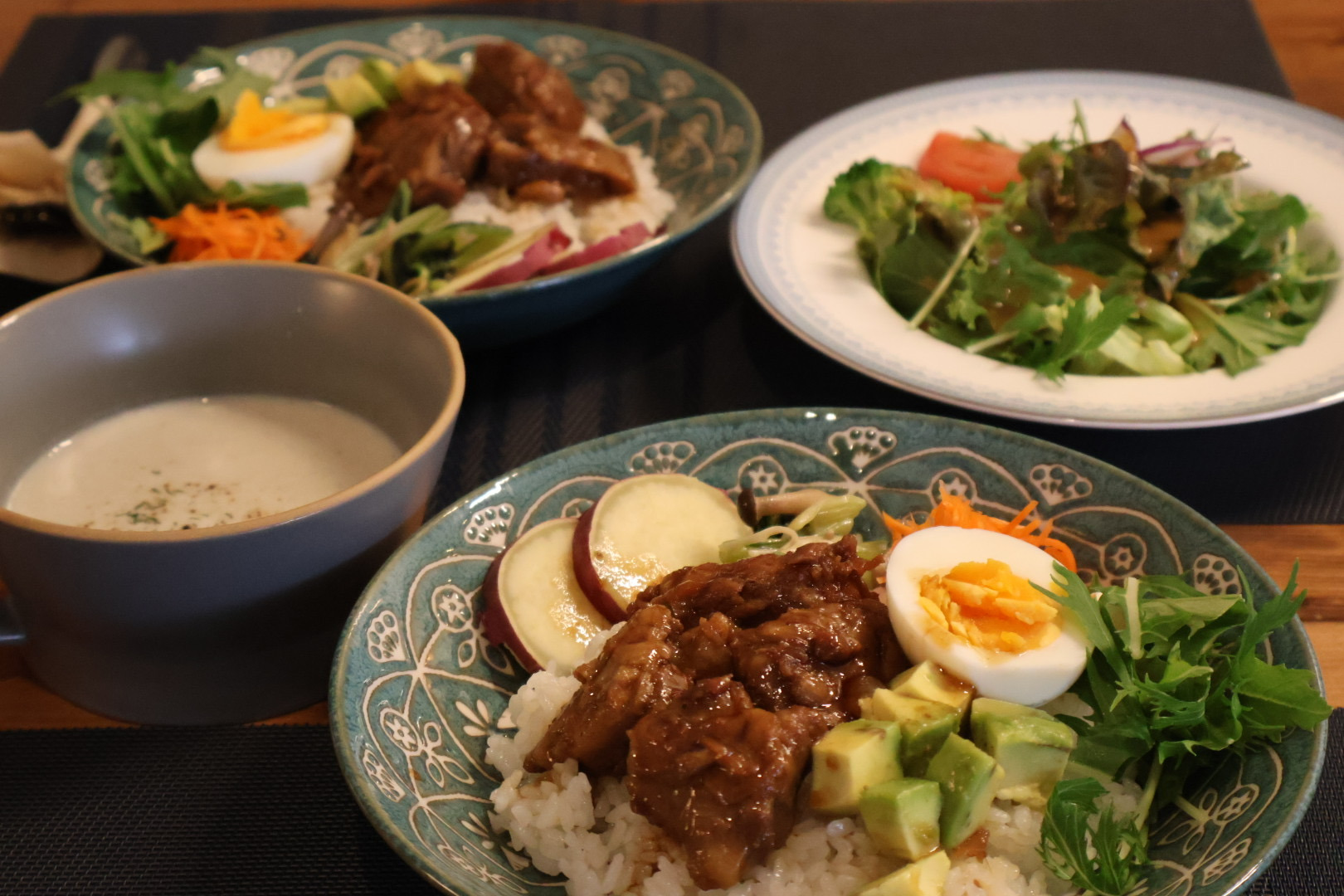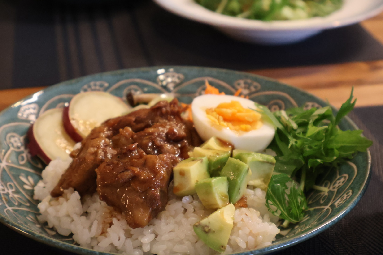 今回はランチメニューの「トロトロ豚煮とアボカドのっけ丼」を注文しました。国産の豚バラ軟骨肉をじっくり煮込んだ、トロトロでおいしいランチプレートです。