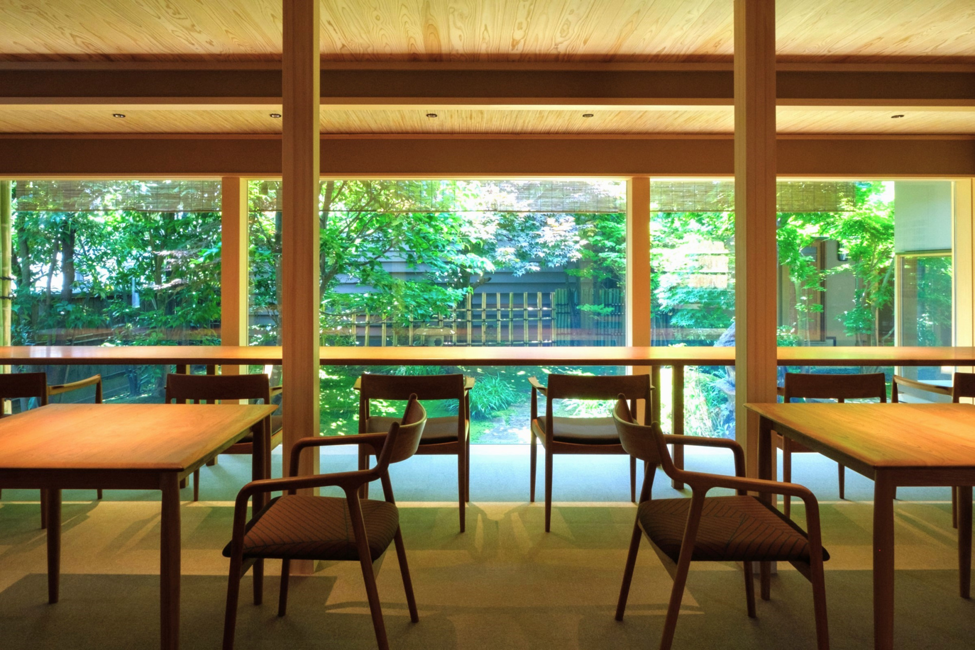 続いてご紹介するのは「茶寮 なか尾」。店内のどの席からも美しい庭園を眺めることができ、空間や家具のひとつひとつにこだわりが感じられる、ゆったりとくつろげる大人のカフェです。季節を感じられる予約制のお弁当や、上品なスイーツを楽しむことができます。