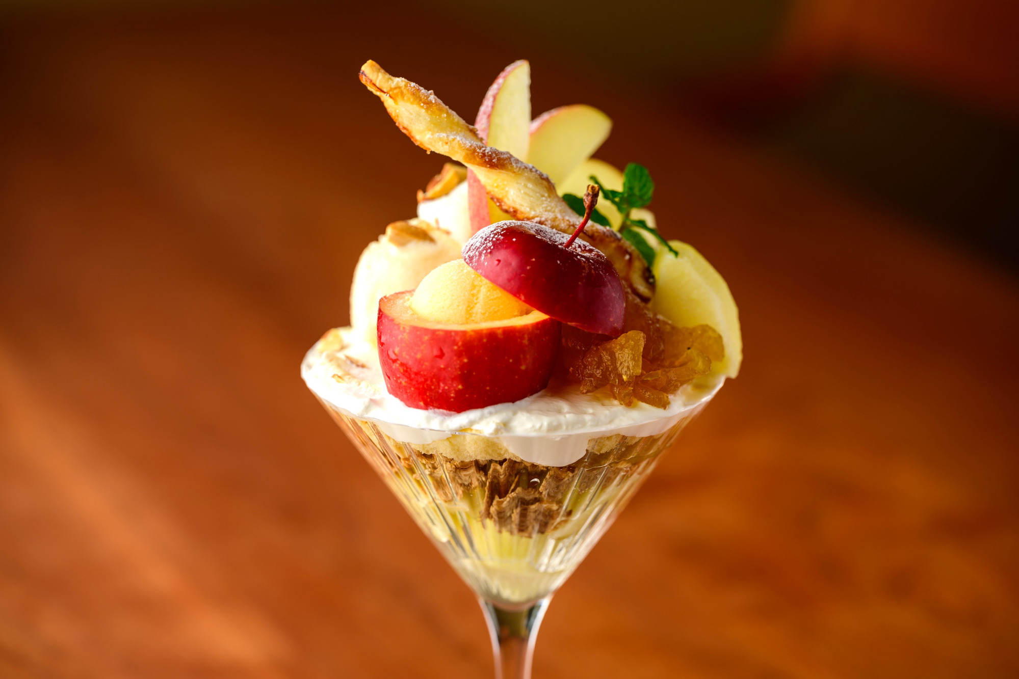 季節の旬のフルーツや食材を使用したパフェは、まるで芸術品のように美しく、味わいも格別です。美しい日本庭園を眺めながら、四季折々の彩りを感じる一品をゆっくりとお楽しみいただけます。