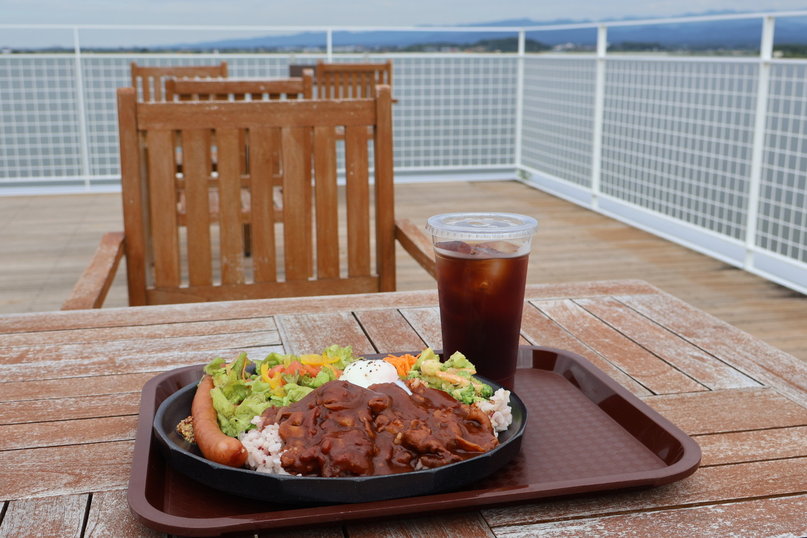 そして、もうひとつこのカフェならではの魅力がテラス席からの眺めです。屋内の席からは見えにくいのですが、テラス席では小松空港から飛び立つ飛行機を眺めることができます。離陸した飛行機が雲の中へと消えていく様子は迫力があり、つい見入ってしまうほど。