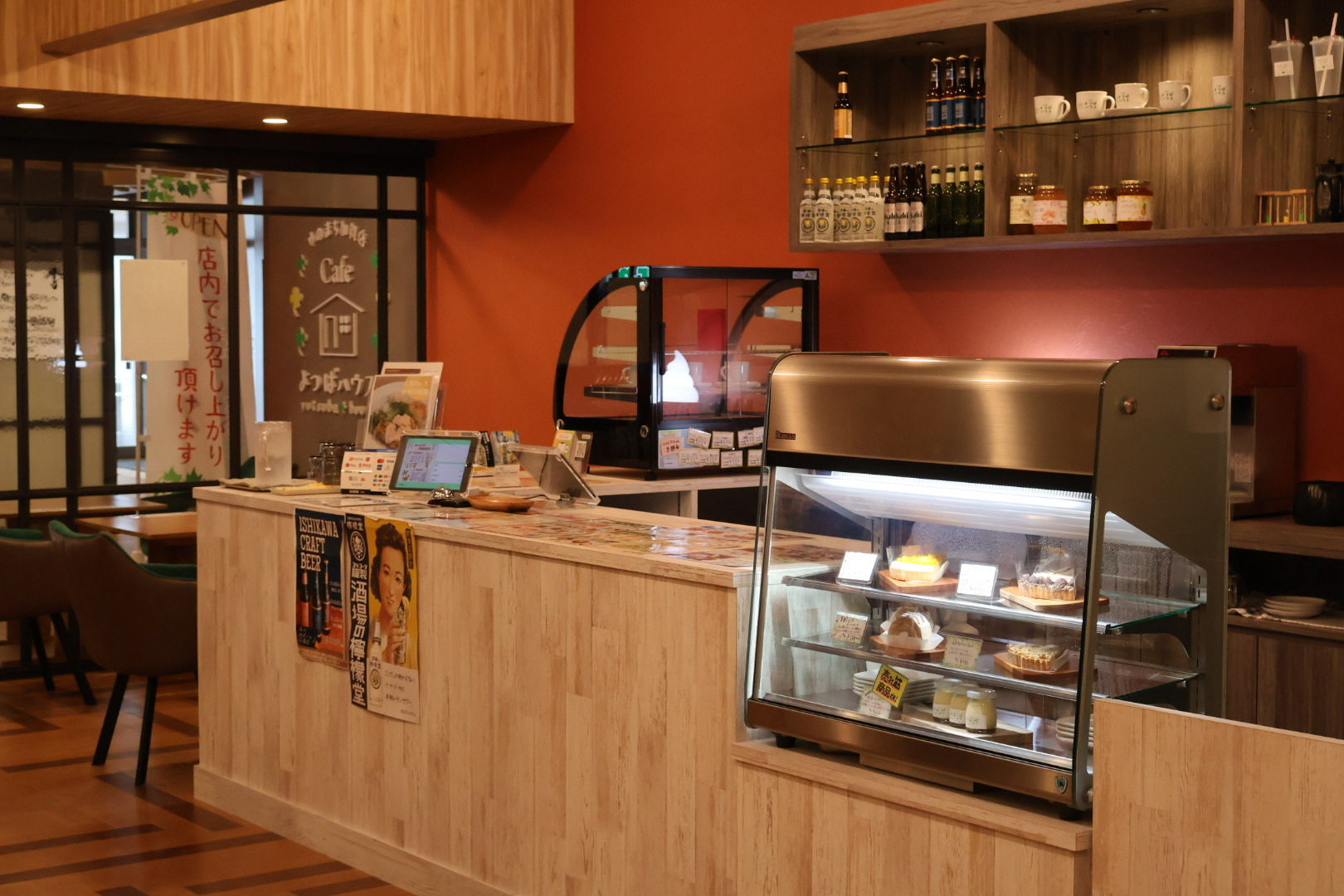 よつばハウスは、カフェメニューも充実しています。ショーケースに並ぶケーキはどれも美味しそうで、つい目を惹かれます。