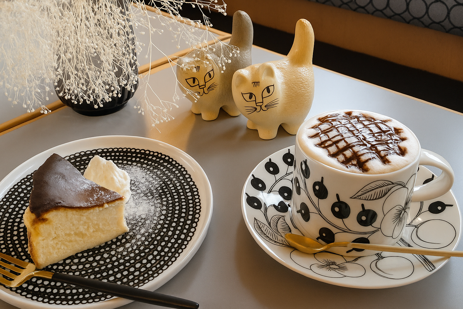 プリンやバスクチーズケーキなどのスイーツが人気で、月替わりのメニューが充実している点も魅力。北欧の食器やインテリアにもこだわりがちりばめられていて、何度も訪れたくなること間違いなしです。