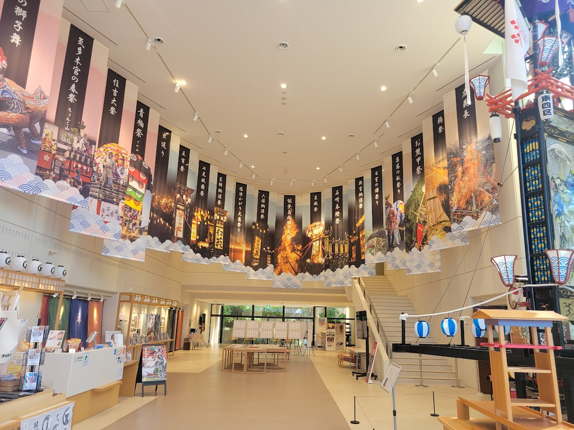会館の最大の特徴は、祭りの迫力を映像と体験の両方で味わえることです。4つのお祭りすべてに体験プログラムが用意されており、実際に参加しているかのような臨場感を楽しめます。