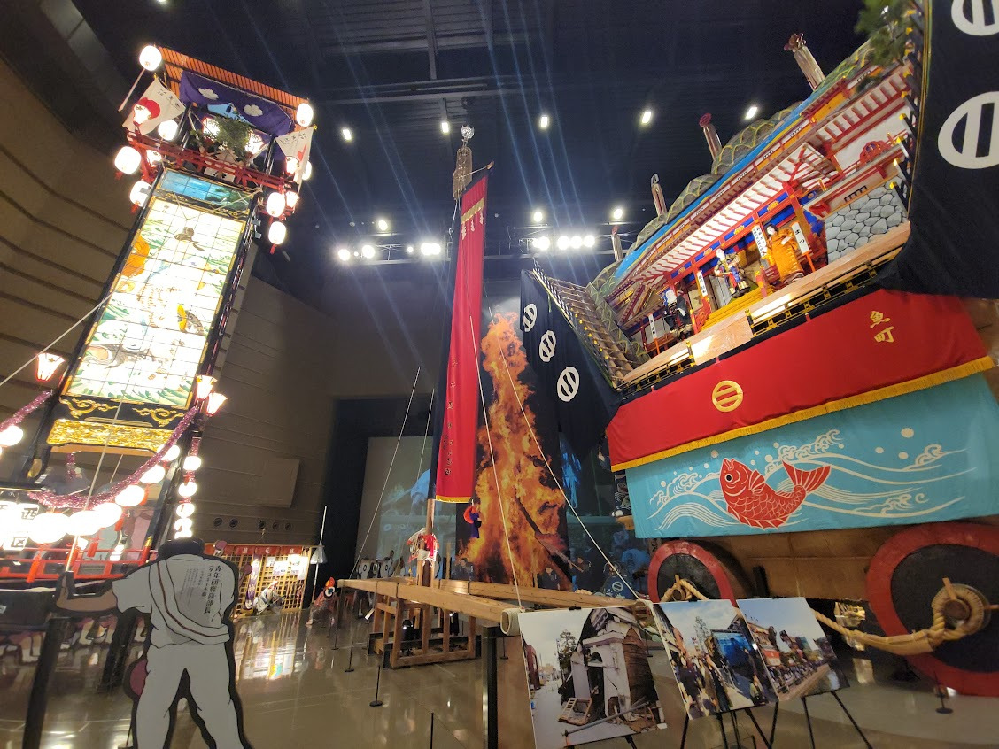 会館に入ると、まず目を引くのは「石崎奉燈祭」の巨大なキリコ奉燈。