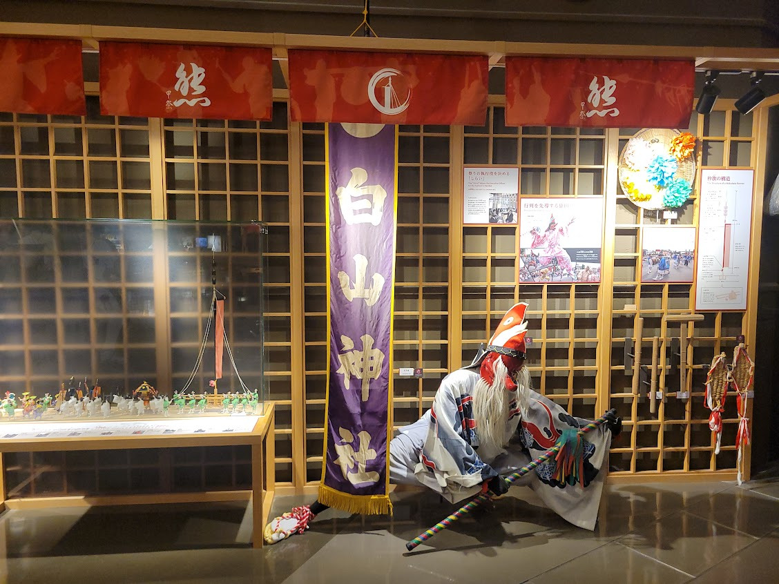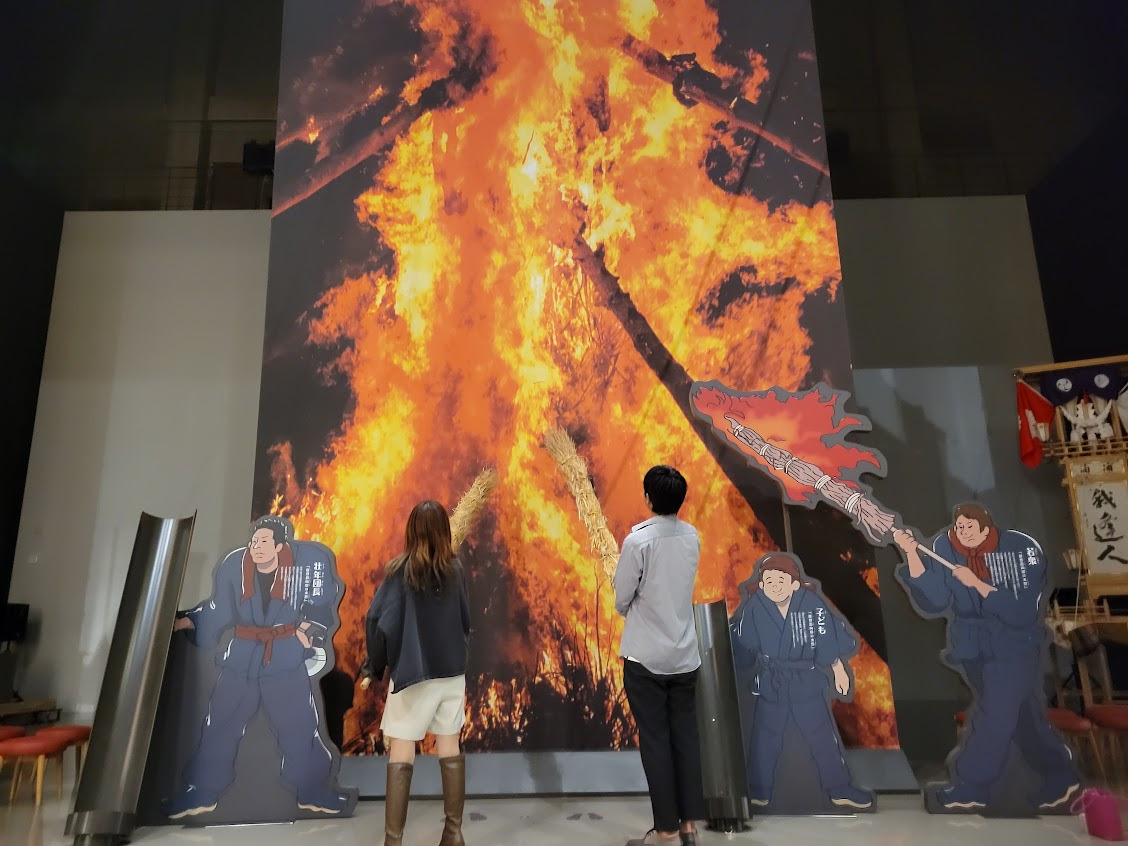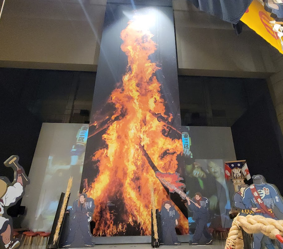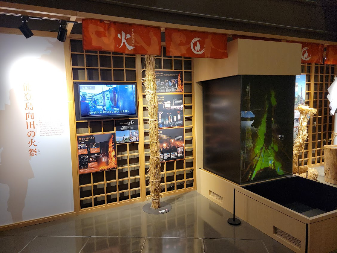 館内では、七尾市を代表する四つの祭り——「青柏祭(せいはくさい)」「石崎奉燈祭(いっさきほうとうまつり)」「能登島向田の火祭(のとじまこうだのひまつり)」「お熊甲祭(おくまかぶとまつり)」を実物展示で紹介しています。