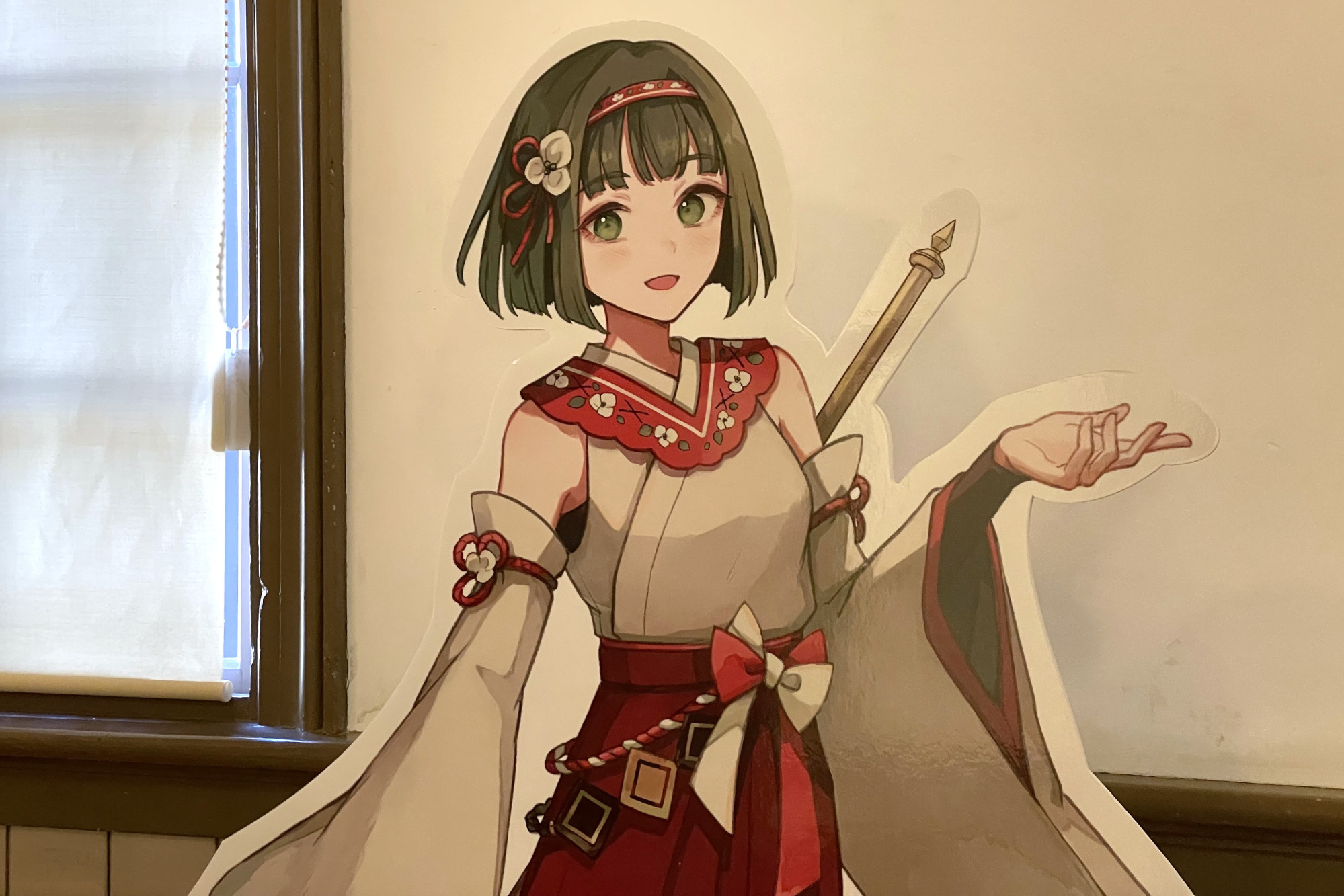 実家は金沢の伝統工芸・加賀繍の工房を営んでいて、伝統を愛する百生吟子さん。玄関を入った正面のところで巫女姿の吟子さんに会えました!いろんな衣装のメンバーに会えるスタンプラリー、今年も楽しすぎます♪