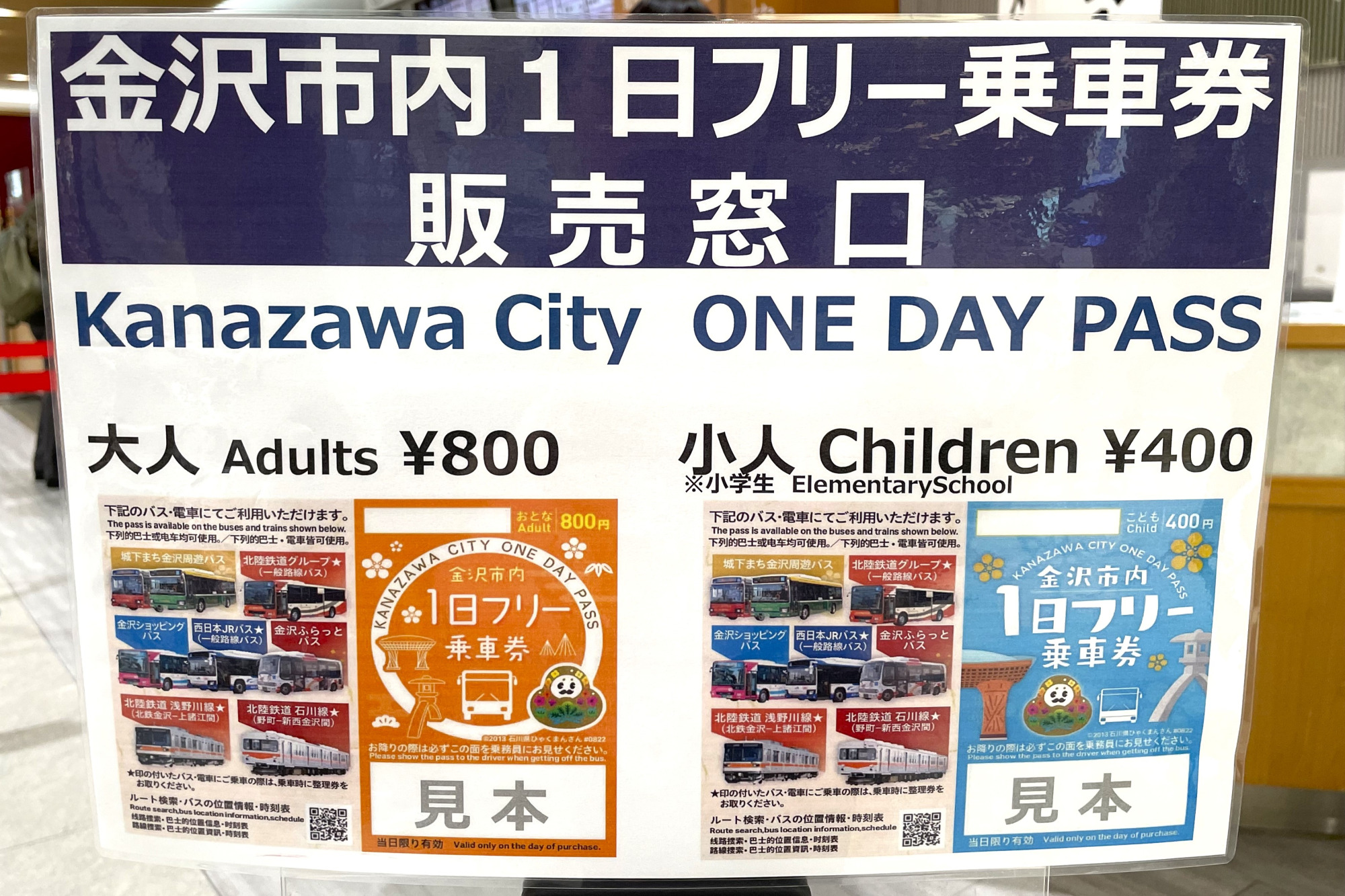 雨や雪が多い金沢の冬はバスが便利。「金沢市内1日フリー乗車券」を金沢駅東口の北鉄グループ案内所などで最初に購入しておけば金沢市内中心部の指定エリア内の路線バスが乗り降り自由になりますよ~!