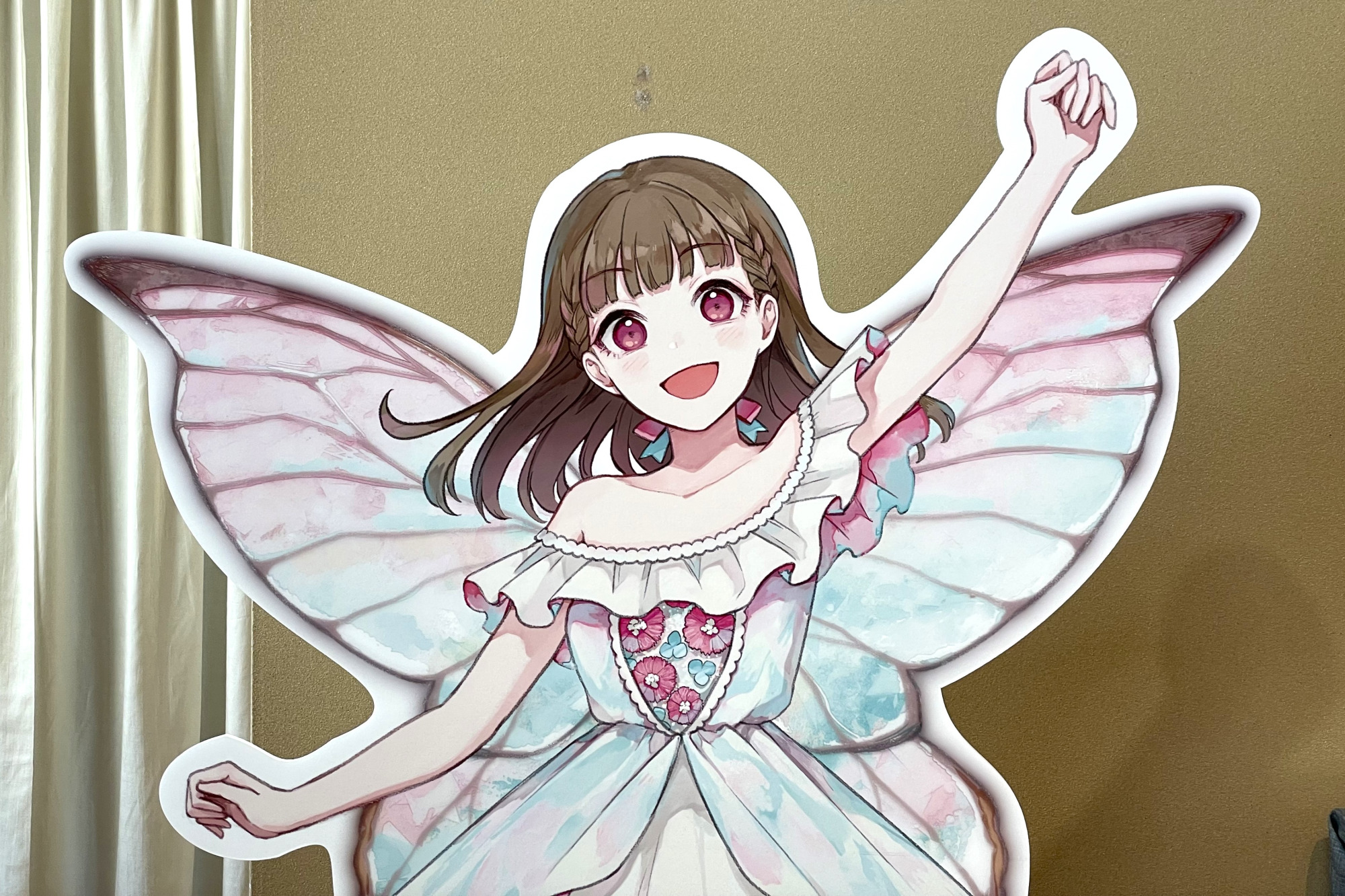 ダブル部長の1人で笑顔がまぶしい日野下花帆さん!パネルは1階にあります。「HASUNOSORA FANTASY」のために新たに描き下ろされた衣装は「ビーストテイマー」!アクリルスタンドも飾ってありましたよ~。