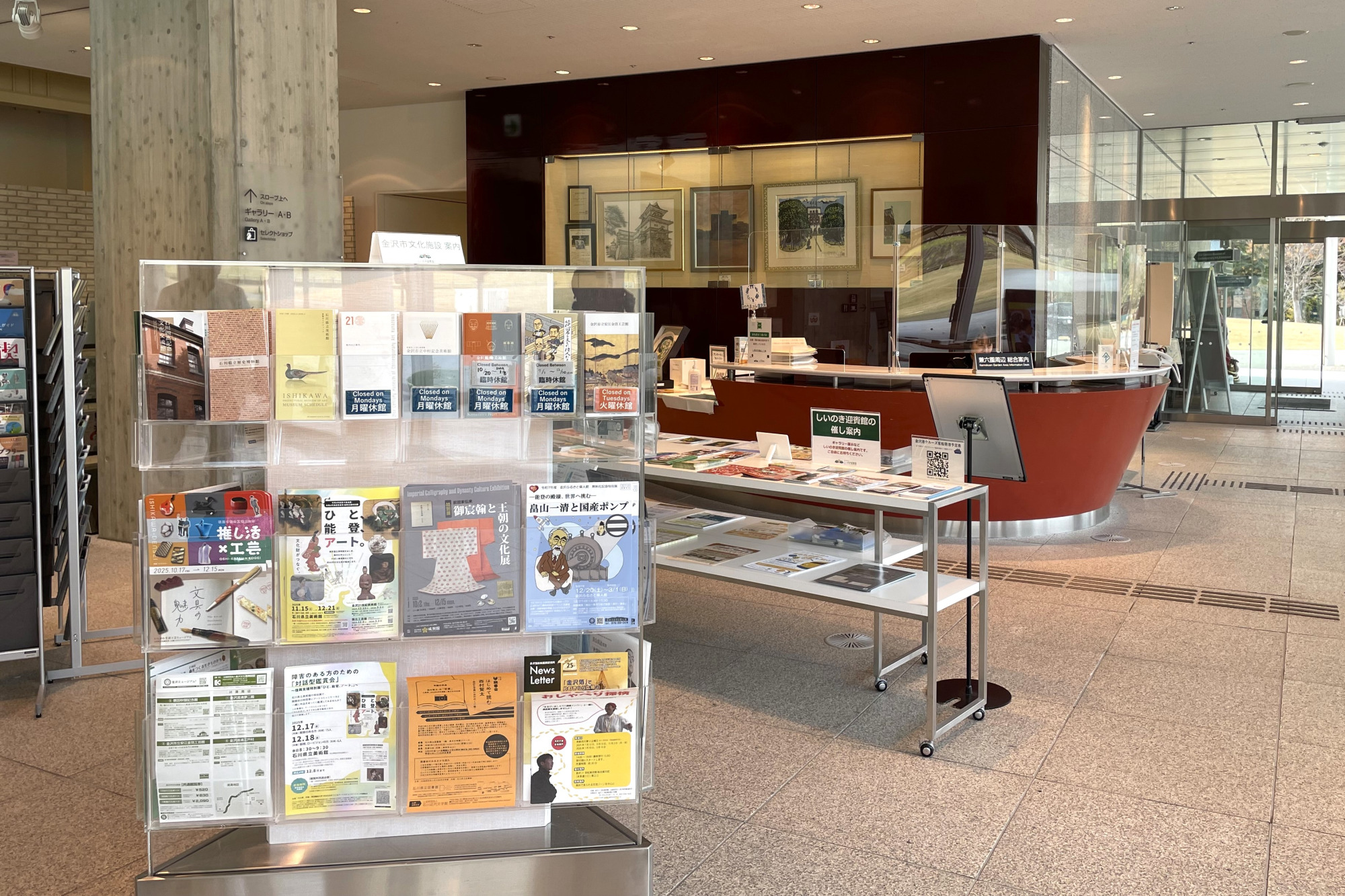 しいのき迎賓館は⾦沢城や兼六園、金沢21世紀美術館などが近いので、観光の拠点にも。観光パンフレットなども充実してますよ。