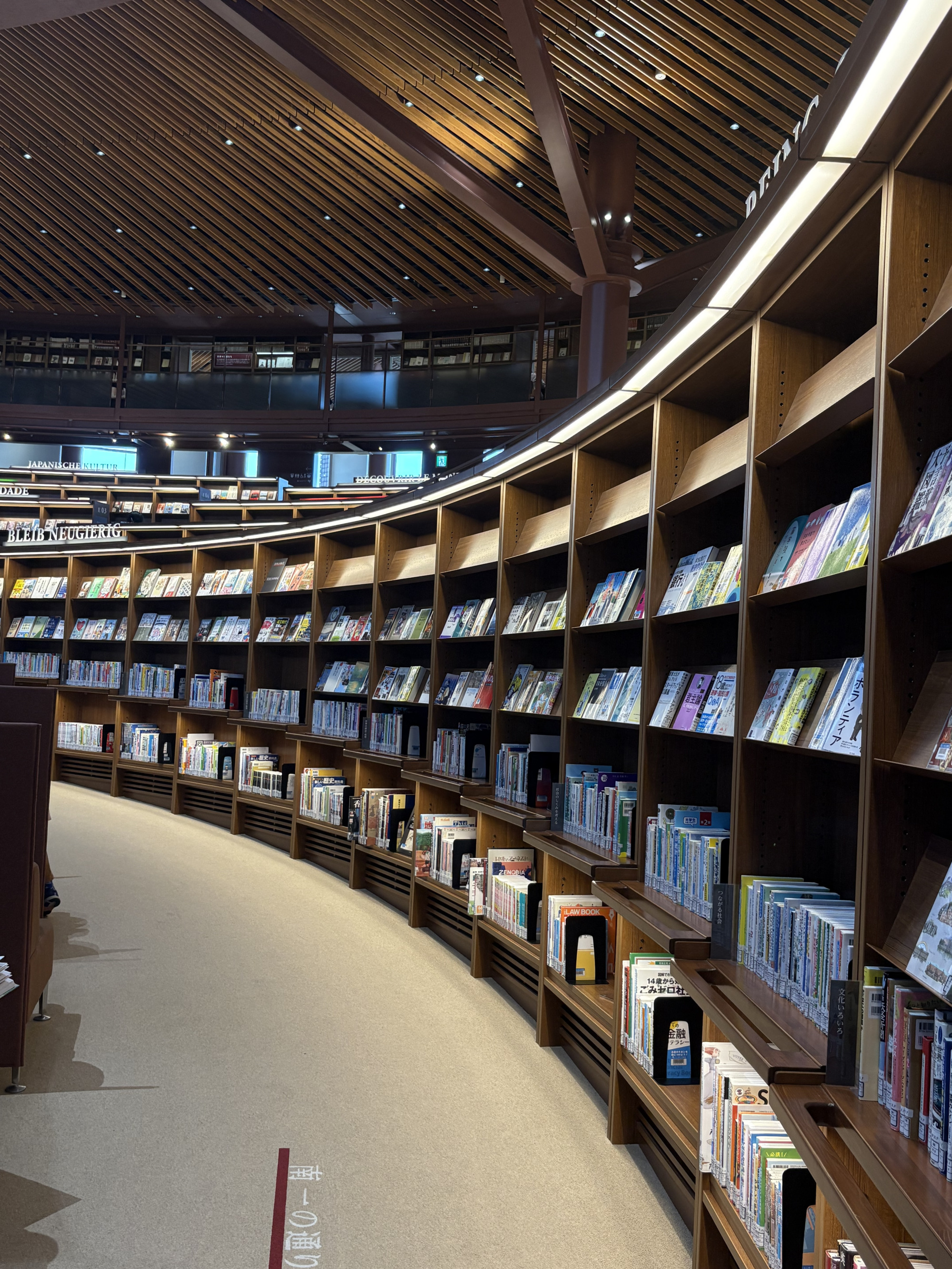 中に入ってみると、見渡す限り本・本・本!の世界に飛び込みます。たくさん並ぶ本棚に圧倒されますが、吹き抜けとなっているので不思議と圧迫感は感じません。