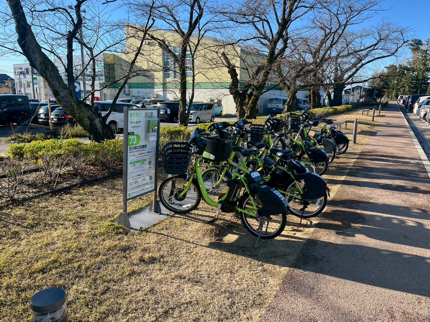 今回は「73 石川県立図書館」というまちのりポートを利用しました。石川県立図書館の駐車場近くにあります。