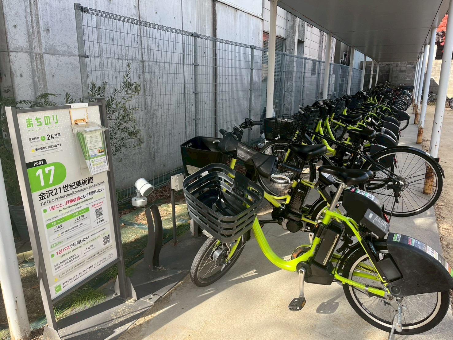 今回の旅では「まちのり」というシェアサイクルを活用していきます。貸出・返却ができるまちのりポートは金沢市内に約100か所設置されていて、どこでも借りて返せる電動アシスト付きシェアサイクル拠点です。観光スポットの近くにも多くあり、車なしでも効率的に移動できます。
