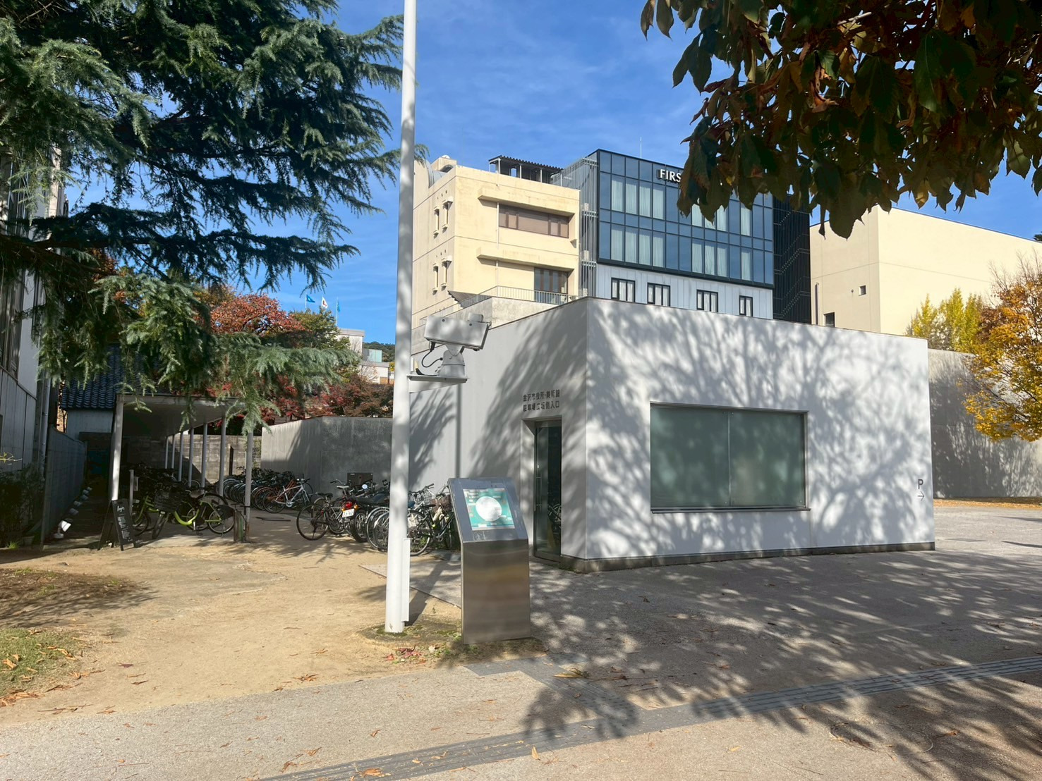 今回、兼六園と金沢21世紀美術館へは「17 金沢21世紀美術館」というまちのりポートを利用しました。金沢21世紀美術館の敷地内にあり、地下駐車場の広坂側入口の隣です。近くにはプロジェクト工房という建物があります。