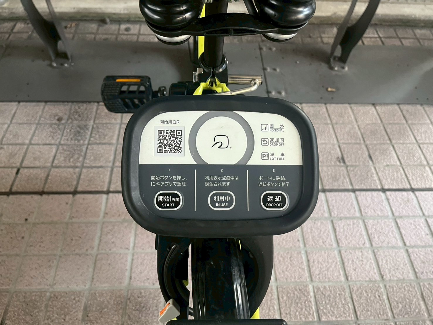 このように自転車についている端末のQRコードを読み取る(丸い操作端末)もしくはパスコードを入力する(四角い操作端末)ことで開錠することができます。開錠できたらそのまま出発してOK!さっそく利用します!
