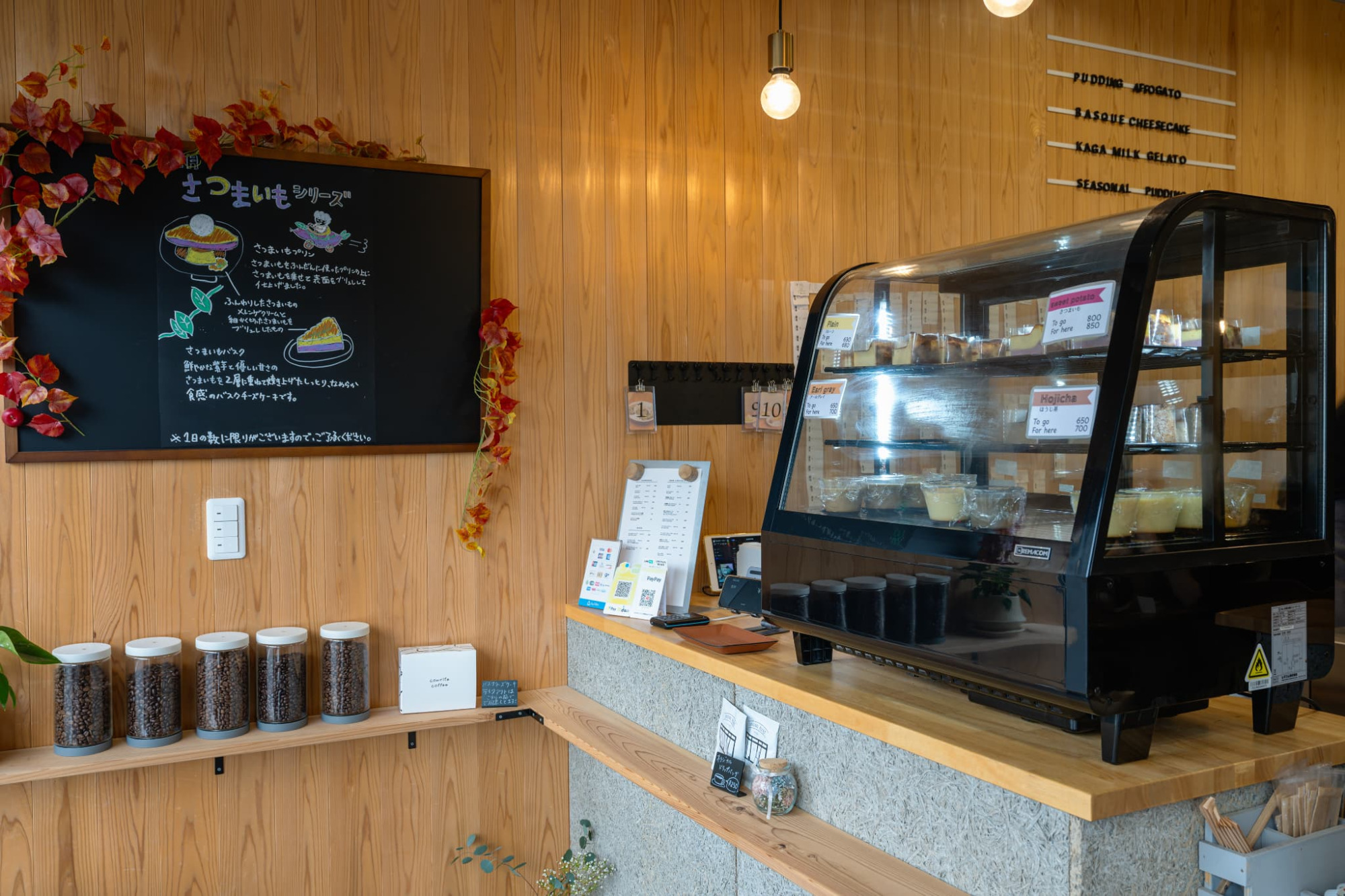 ひと息つきたくなったら、にし茶屋街近くの「COWRITE COFFEE」へどうぞ。全国の個人ロースターによる豆から選べる一杯と季節のスイーツで、写真も会話も弾みます。