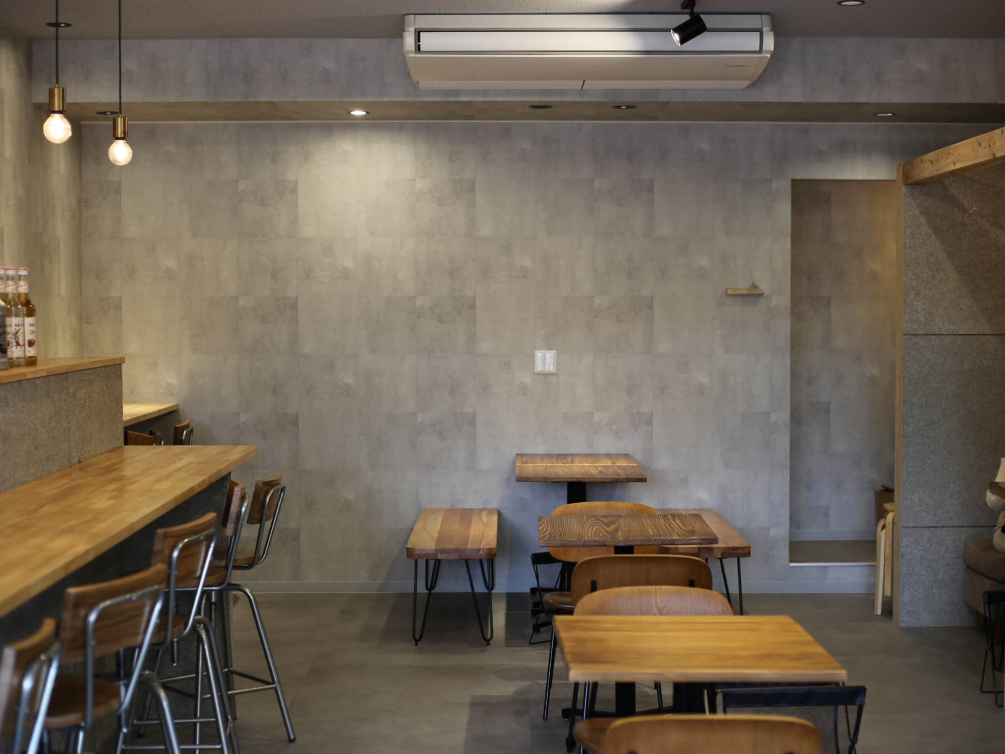 コンクリートと木の温もりが心地よい、にし茶屋街近くの人気カフェ。店名には“みんなで作る珈琲屋”という思いが込められ、ひとりでも誰とでも過ごしやすい温かな雰囲気が漂います。