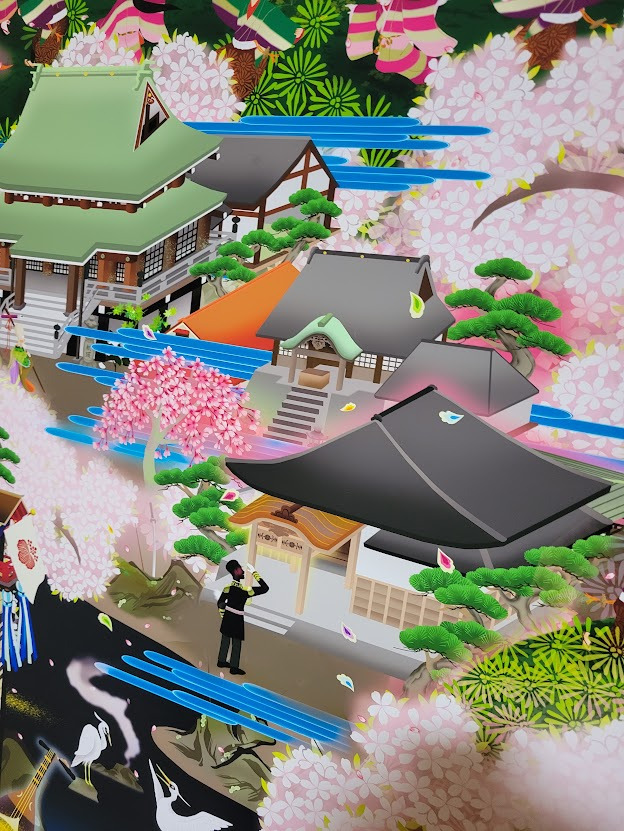 さらに、客殿を彩る「だるま商店」の襖絵は必見です。行啓の様子や、そのために小木からわざわざ連れてきたイルカが鮮やかに描かれ、和倉の歴史が凝縮されたような空間が広がります。伝統とモダンが融合した、心躍る景色を楽しめます。