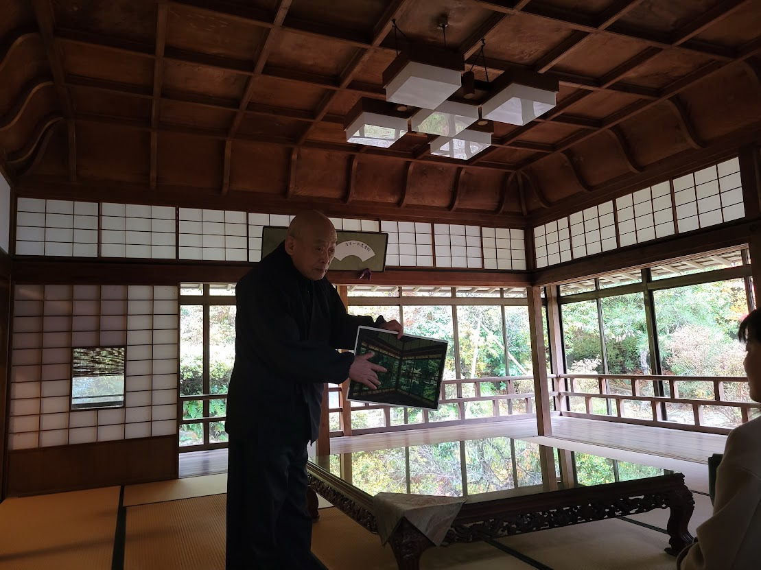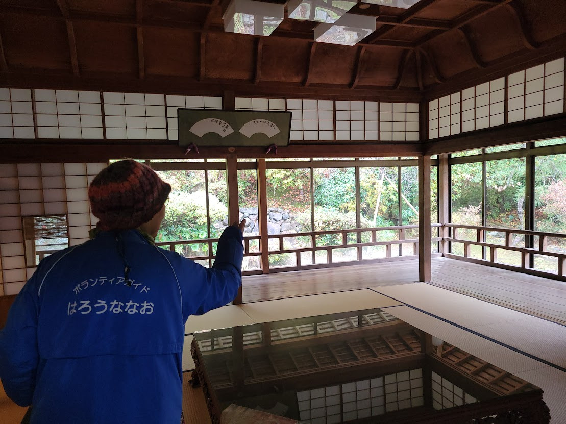 続いて訪れる「青林寺」には、皇太子殿下が休憩された「御座所(ござしょ)」が保存されています。柱には木曽檜、天井には栃の木など、最高級の材を用いた意匠は、まさに息を呑む美しさです。