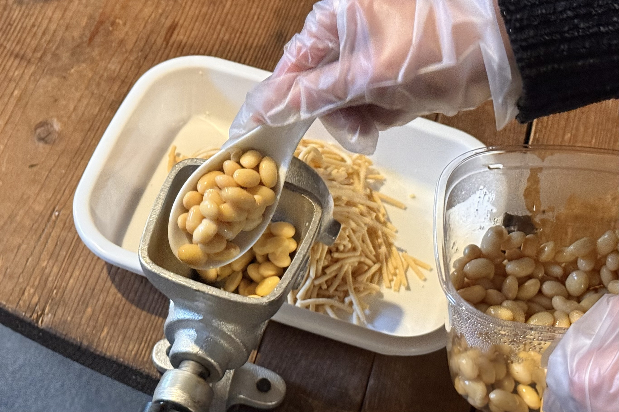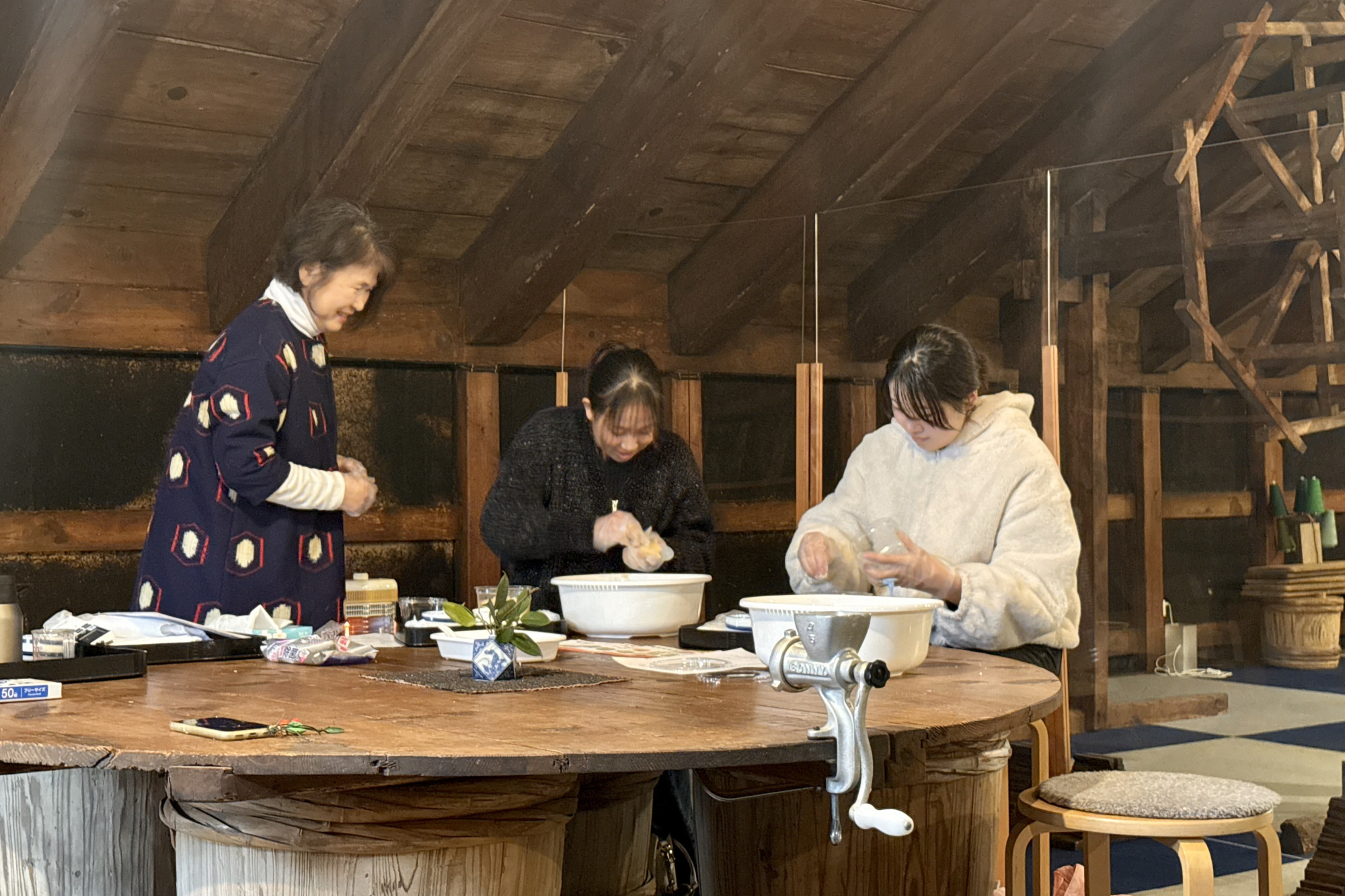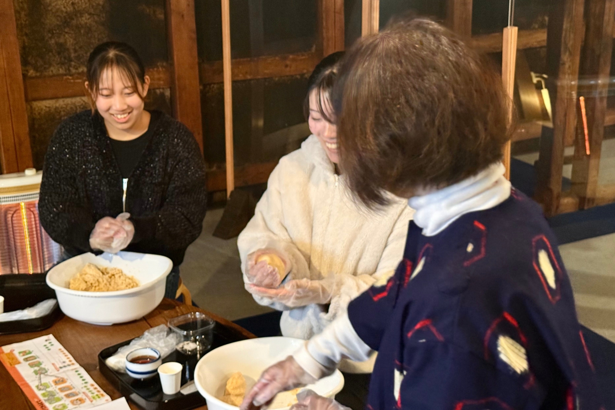 指導してくださる女将さんは、ただ工程を説明するだけでなく、「なぜこの作業をするのか」といった理由もひとつひとつ丁寧に教えてくれます。そのおかげで、楽しみながら体験できただけでなく、味噌づくりについて少し詳しくなれた気がします。