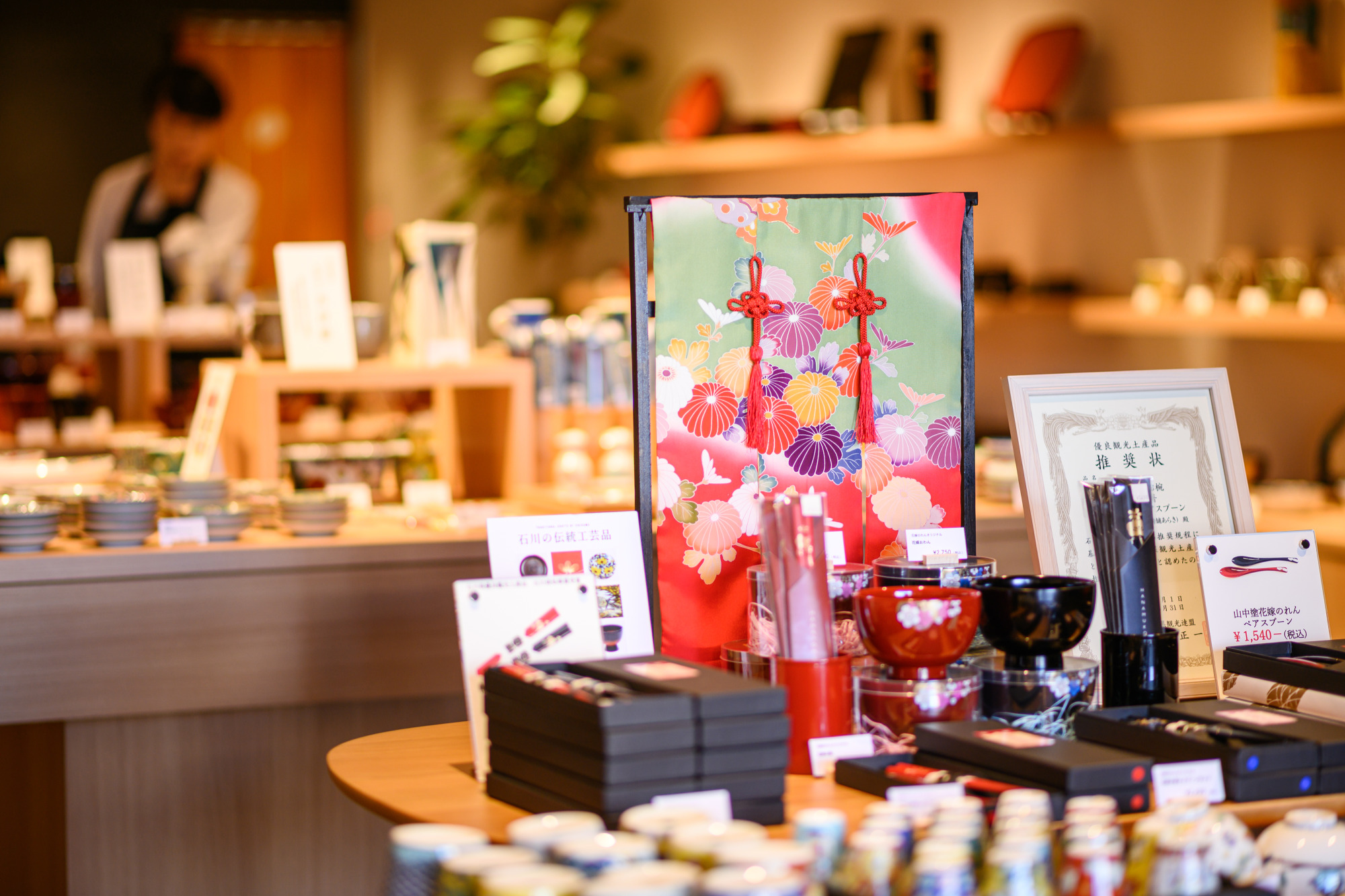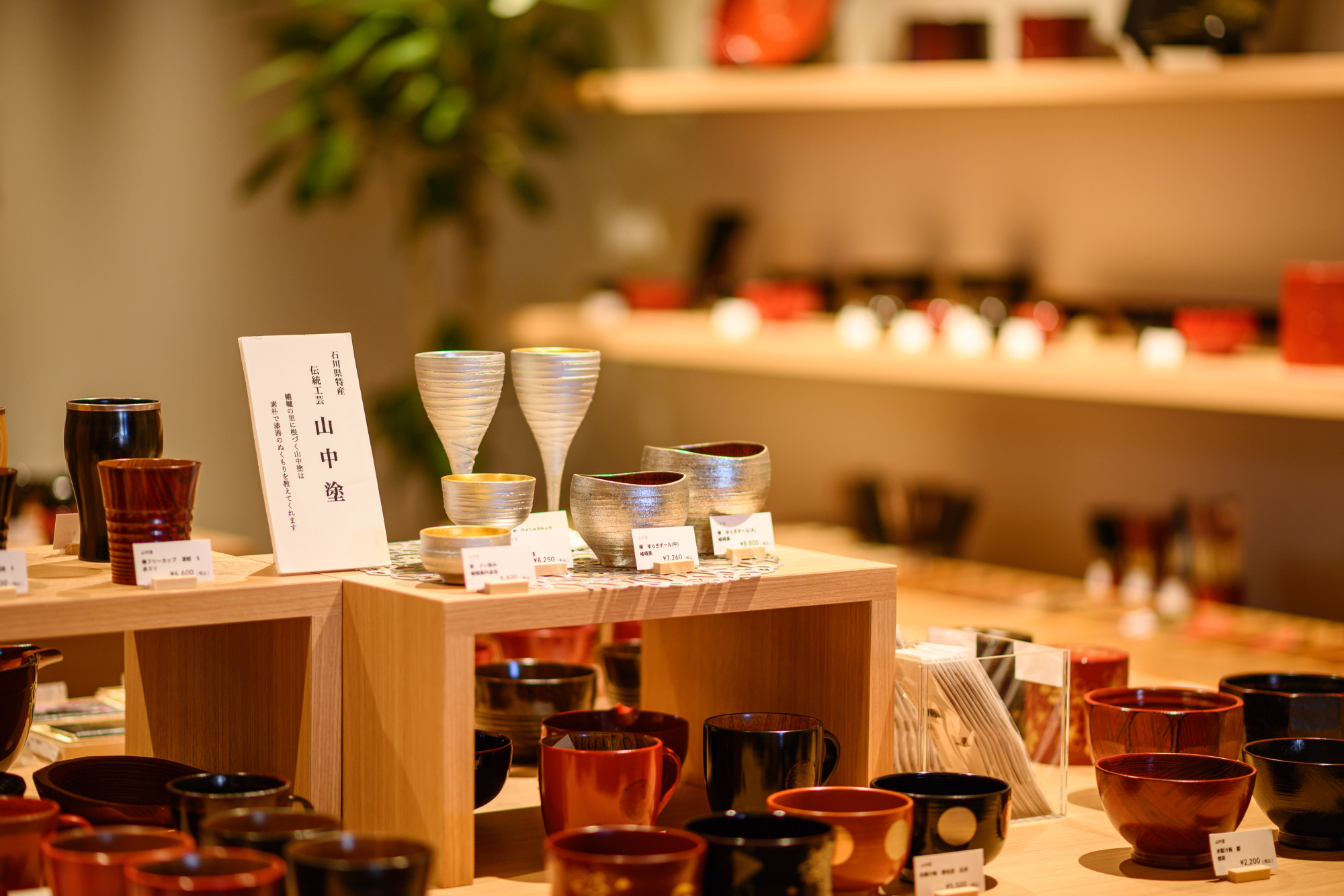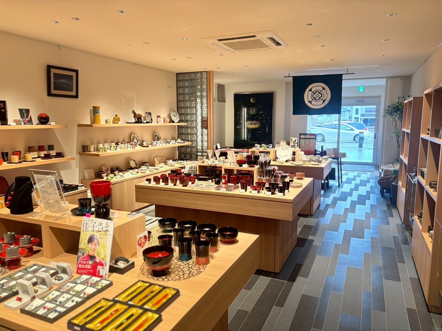 一本杉通りに位置し、おしゃれな外観が目を引く「漆陶舗あらき」さん。語り部処として、お店が忙しくない時間であれば事前のアポイントなしでも、能登や七尾のこと、輪島塗の作業工程、職人さんの手仕事についてお話を伺うことができます。また、輪島塗や山中塗、九谷焼などの購入ができるほか、輪島塗の沈金を気軽に体験できるなど、石川・能登の伝統工芸に触れられるのも魅力です。