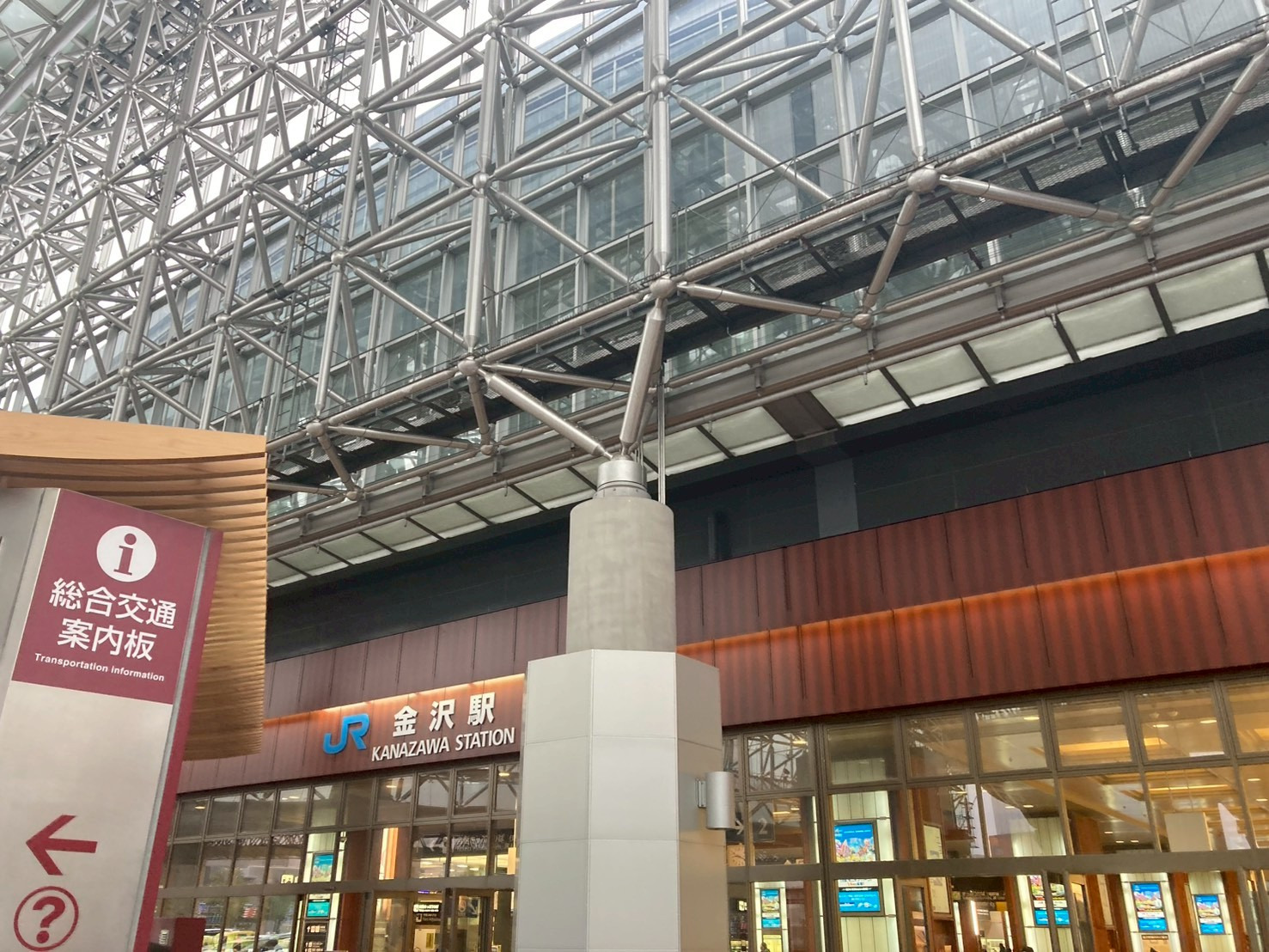 石川への玄関口・金沢駅。駅構内にはたくさんの飲食店があり、移動の合間でも気軽に立ち寄れるのが魅力です!