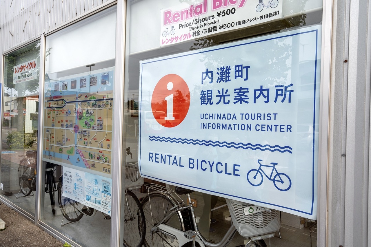 今回の旅の移動手段となる自転車は内灘駅の目の前にある『内灘町観光案内所』でレンタルできます。