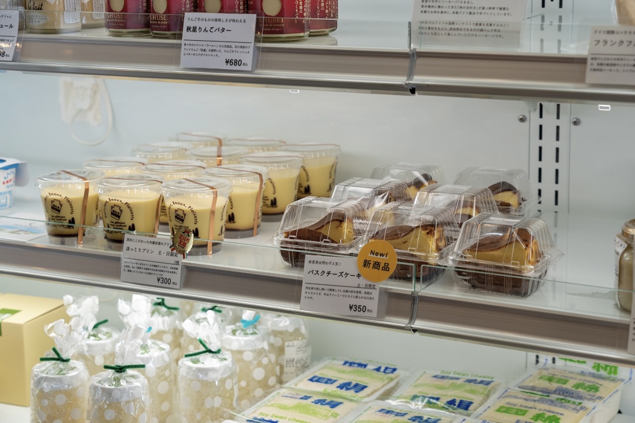 河北潟(かほくがた)のミルクを使った、プリンとバスクチーズケーキなど