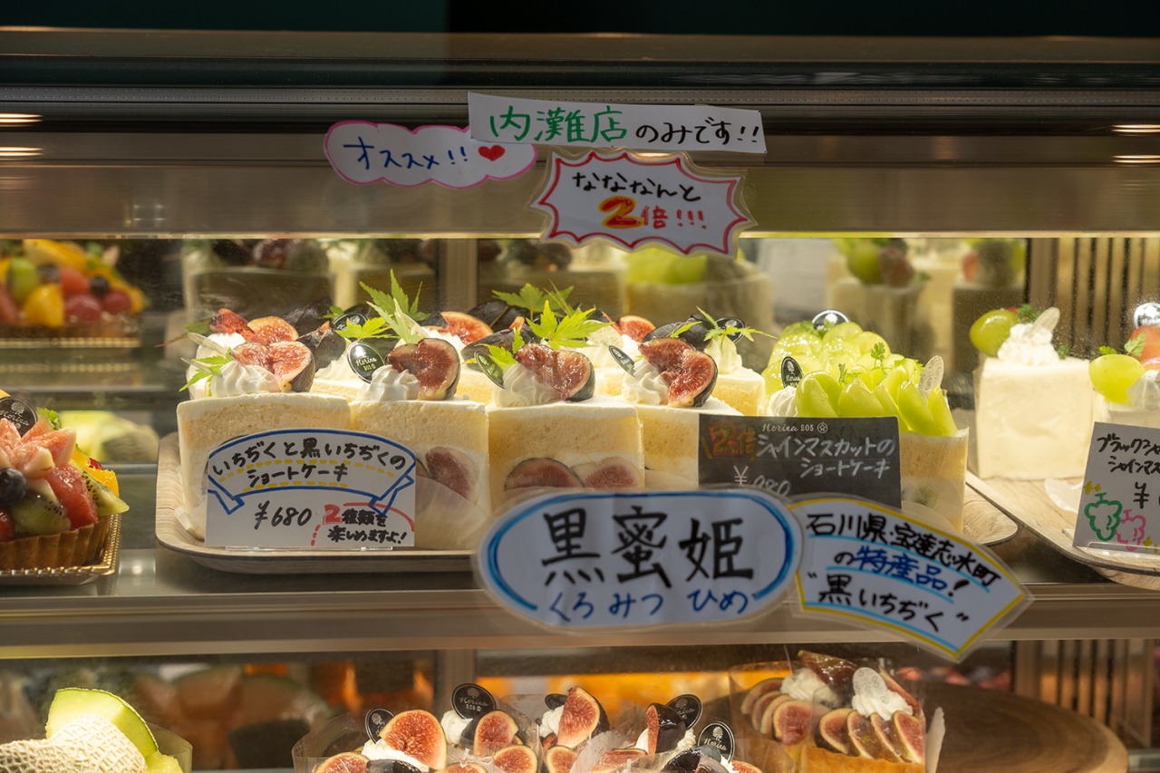 内灘店限定で、シャインマスカットといちじくを通常の2倍使ったケーキも販売されています。(※販売しているケーキの種類は季節やその日の仕入れによって異なるそうです)